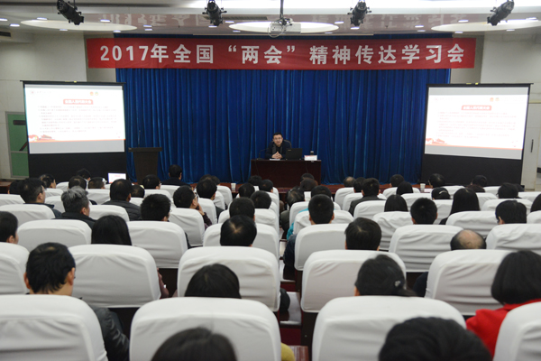 2017年3月23日,PP电子在临潼校区图书馆一楼报告厅召开“两会”精神传达学习会。全国人大代表、PP电子校长高岭做了2017年全国“两会”精神传达学习的报告,校领导李博飞、朱君强、黄翔、李鹏飞、朱永民、黄新波、田靖鹏,校长助理汪义瑞、全校科级以上干部、全体辅导员近两百余人参加学习。校党委副书记李博飞主持了报告会。高岭从人大会议概况、人大会议主要精神、陕西代表团工作情况三个方面介绍了参加全国人大十二届五次会议的体...