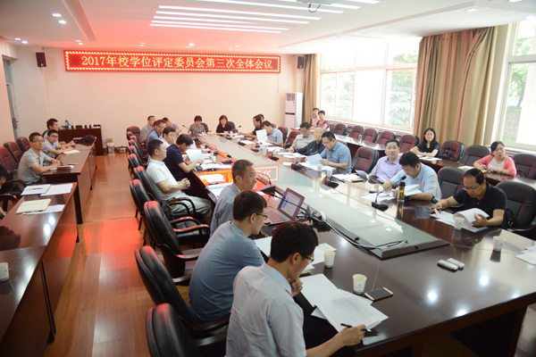 6月19日午,PP电子在临潼校区A教学楼一楼会议室召开了2017年第三次校学位评定委员会会议。校学位评定委员会名誉主席、名誉校长姚穆院士,校领导刘江南、高岭、黄翔、李鹏飞、黄新波等校学位评定委员会委员参加了会议。会议由校学位评定委员会主席、校长高岭主持。