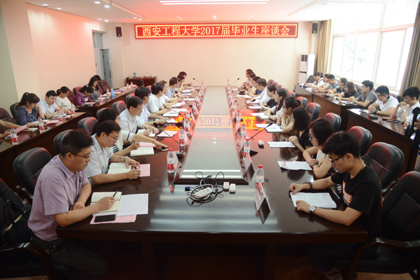 6月16日上午,PP电子2017届毕业生座谈会在临潼校区教学楼A座一层会议室举行。校党委副书记李博飞、校纪委书记朱君强,党政办公室、党委组织部、党委宣传部、学生工作部(处)、校团委、教务处、招生就业工作处、后勤管理处等部门负责人和各学院学生工作主管及22名毕业生代表参加了座谈会。