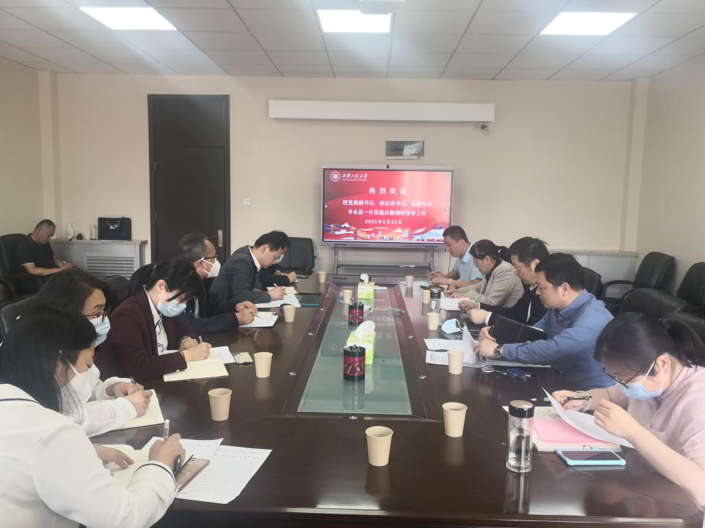 5月24日下午,校党委副书记、纪委书记辛永昌一行到后勤管理处(集团)开展调研指导工作,校纪委副书记胡小进等4人陪同调研,后勤党政领导班子、所属科室(中心)正副职负责人参加了调研会,会议由后勤管理处(集团)党总支书记杨森主持。会上,调研组一行认真听取了后勤管理处(集团)副处长张峰从后勤基本情况、近年工作开展情况、存在问题及推进方向、廉政风险点、风险防控思路五个方面的汇报。杨森结合近两年来省委巡视、校...