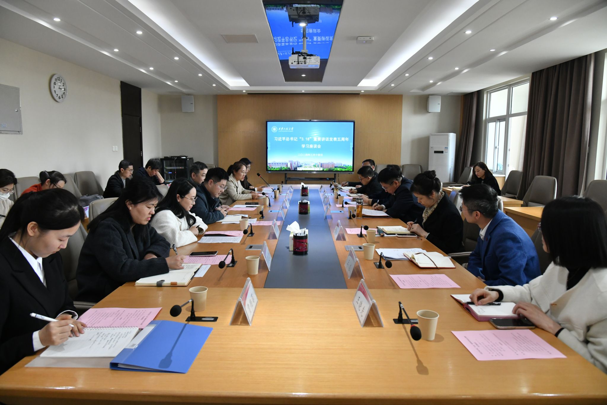 值习近平总书记在学校思政课教师座谈会发表重要讲话五周年之际,3月14日下午,PP电子在临潼校区行政楼第三会议室召开习近平总书记“3.18”重要讲话发表五周年学习座谈会。校党委副书记井浩主持会议并讲授思政课,党委宣传部、教务处、马克思主义学院、党委学工部、党委研工部、党委教师工作部、校团委等单位负责人,部分教师、辅导员、学生代表参会。2019年3月18日,习近平总书记主持召开学校思想政治理论课教师座谈会并发表重要...