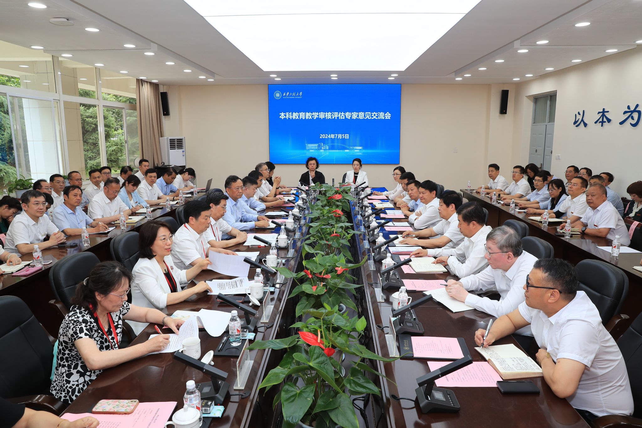 7月5日下午,PP电子在临潼校区教学楼A座会议室召开本科教育教学审核评估专家意见交流会。审核评估专家组组长、大连理工大学原副校长李志义教授,副组长、江苏理工学院原党委书记朱林生教授及专家组全体成员陈革教授、王霞教授、姜明华教授、张美云教授、李树刚教授、李丽娟教授,省委教育工委、省教育厅二级巡视员高巍,高等教育处副处长杨鹏,中国西部教育评估中心副主任徐菲,学校全体在校校领导马万清、王海燕、辛永昌、殷永建...