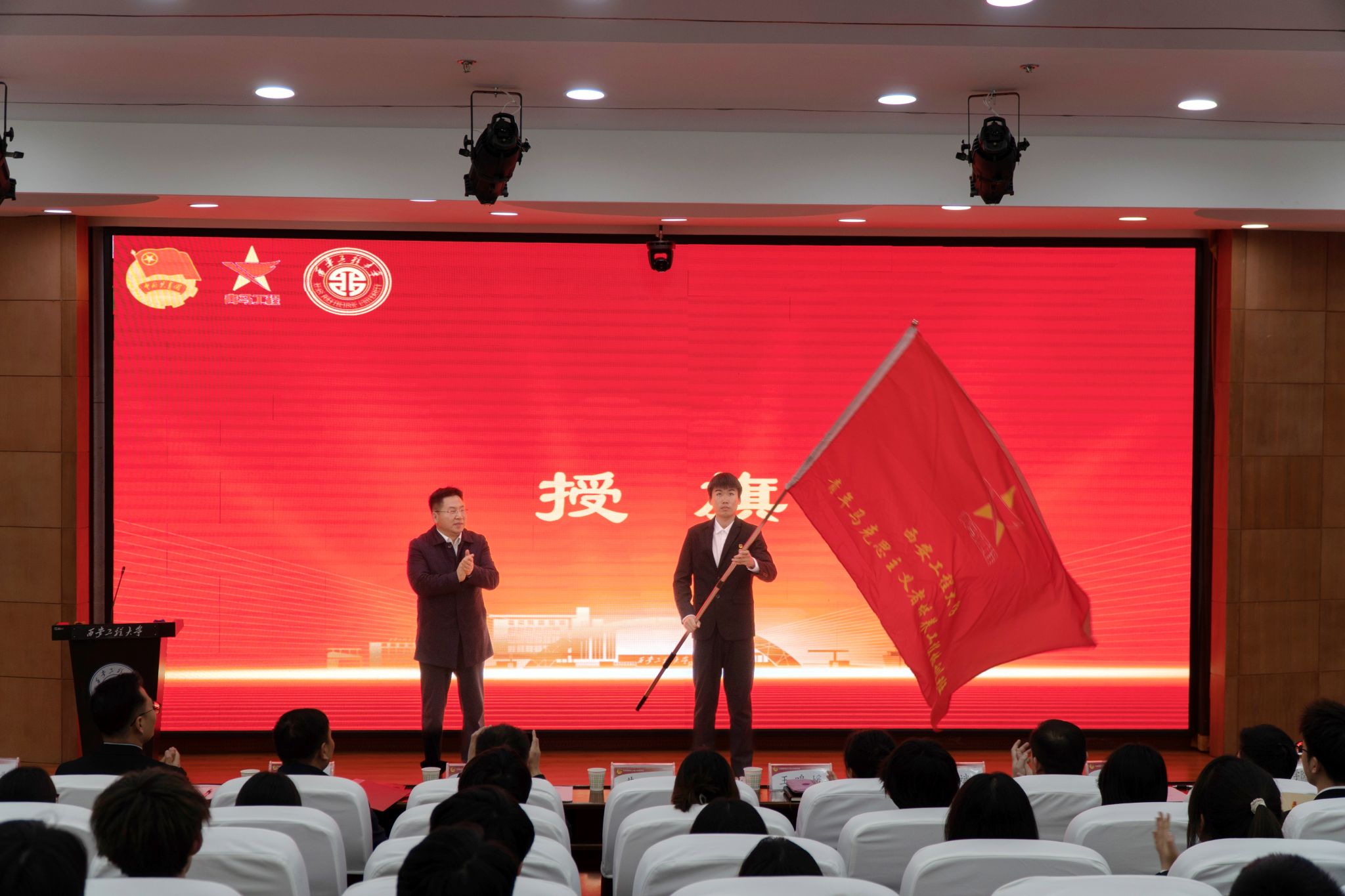 12月19日,PP电子在临潼校区图书馆一楼报告厅举行2024年青年马克思主义者培养工程培训班开班仪式。校党委副书记井浩出席仪式并讲授思政课。党委宣传部、学生工作部、研究生工作部、校团委等部门负责人及各学院团委书记、辅导员、196名青马工程培训班学员参加仪式。金花校区西纺报告厅设置分会场同步直播。开班仪式由校团委副书记凌旭主持。井浩为本次培训班授旗,并以“听党话、跟党走,做新时代坚定的马克思主义者”为题为参训学...