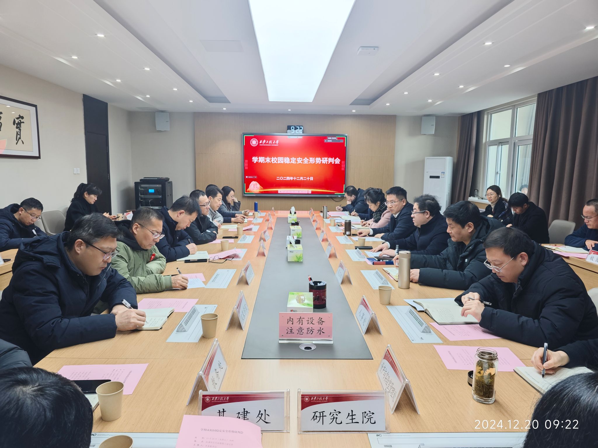12月20日,校稳定安全工作委员会在临潼校区举行校园稳定安全形势研判会,传达学习上级稳定安全工作相关文件精神,通报近期校园安全检查情况,对学期末校园稳定安全形势进行研判,部署相关工作。校稳定安全工作委员会“一办六组”成员单位负责人、各学院院长现场参加会议,各院部级党组织书记在线上参加会议,会议由校党委副书记井浩主持。会上,稳定办传达了近期上级稳定安全工作相关文件精神,通报了近期校园安全明察暗访情况...