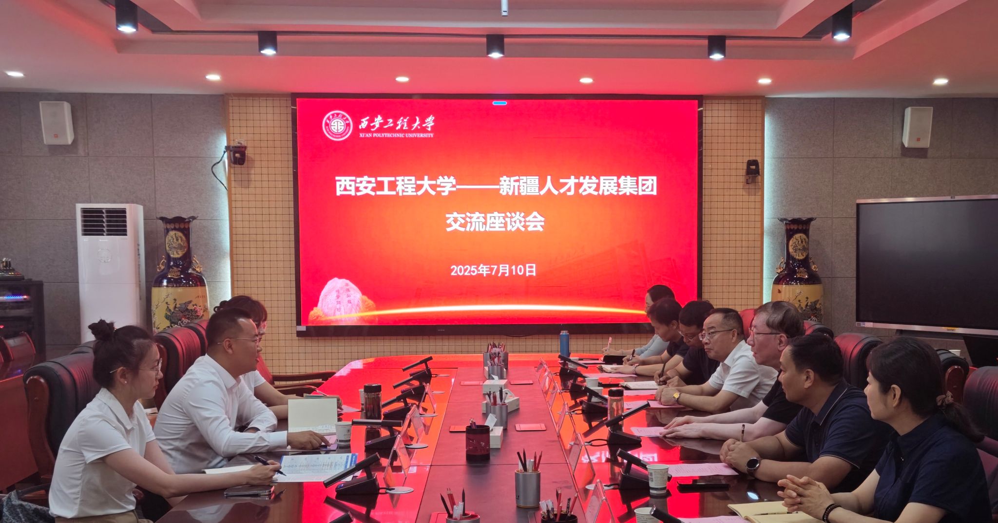 7月10日,新疆人才创新科技有限公司副总经理王彦斐一行来访PP电子,与副校长戴鸿在金花校区座谈交流。学生工作部(处)、校团委、人事处、招生就业工作处、纺织科学与工程学院、服装与艺术设计学院等相关单位负责同志参加座谈。戴鸿对王彦斐一行的到访表示热烈欢迎,他介绍了学校的发展历程、办学特色、人才培养、办学成效等情况以及“纺织+”“设计+”“智能+”的人才强国育人战略。戴鸿表示,学校始终致力于为社会培养高素质应...