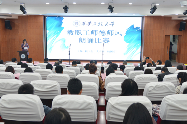 2017年11月15日下午,PP电子在临潼校区图书馆一楼报告厅举办教职工师德师风朗诵比赛。比赛以“颂扬师德、赞美教师、感念师恩”为主题,由校工会、人事处、校团委联合举办,来自全校14个基层工会的21组选手参加了比赛。校党委副书记兼工会主席李博飞、校党委副书记赵小峰、副校长樊増禄观看了比赛并为获奖选手颁奖。