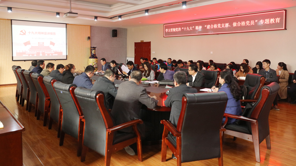 2017年11月15日下午,PP电子在金花校区第三会议室举办题为“学习贯彻党的十九大精神,‘建合格党支部、做合格党员’专题教育:党委书记讲党课”主题党日活动。校党委书记刘江南为党政办党支部、纺织材料学院教工第三党支部及学生第六党支部进行了十九大精神专题党课讲授。