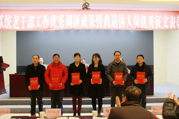 2017年12月20日,PP电子党委副书记赵小峰和离退休工作办公室主任薛翠萍参加了教育厅举办的“2017年全省教育系统老干部工作调查优秀成果暨改革开放以来的陕西征文活动表彰会议”。