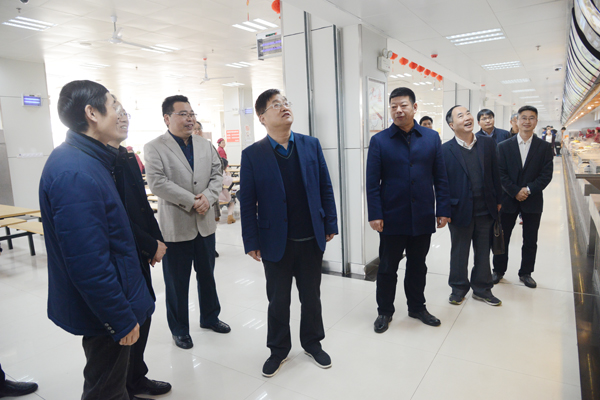 2018年新学期教职工报到上班第一天,3月3日上午,党委书记刘江南带队,校领导赵小峰、李鹏飞、朱永民、黄新波等一同来到临潼校区教学实验场所及后勤保障、基建项目现场,实地检查新学期开学准备情况。