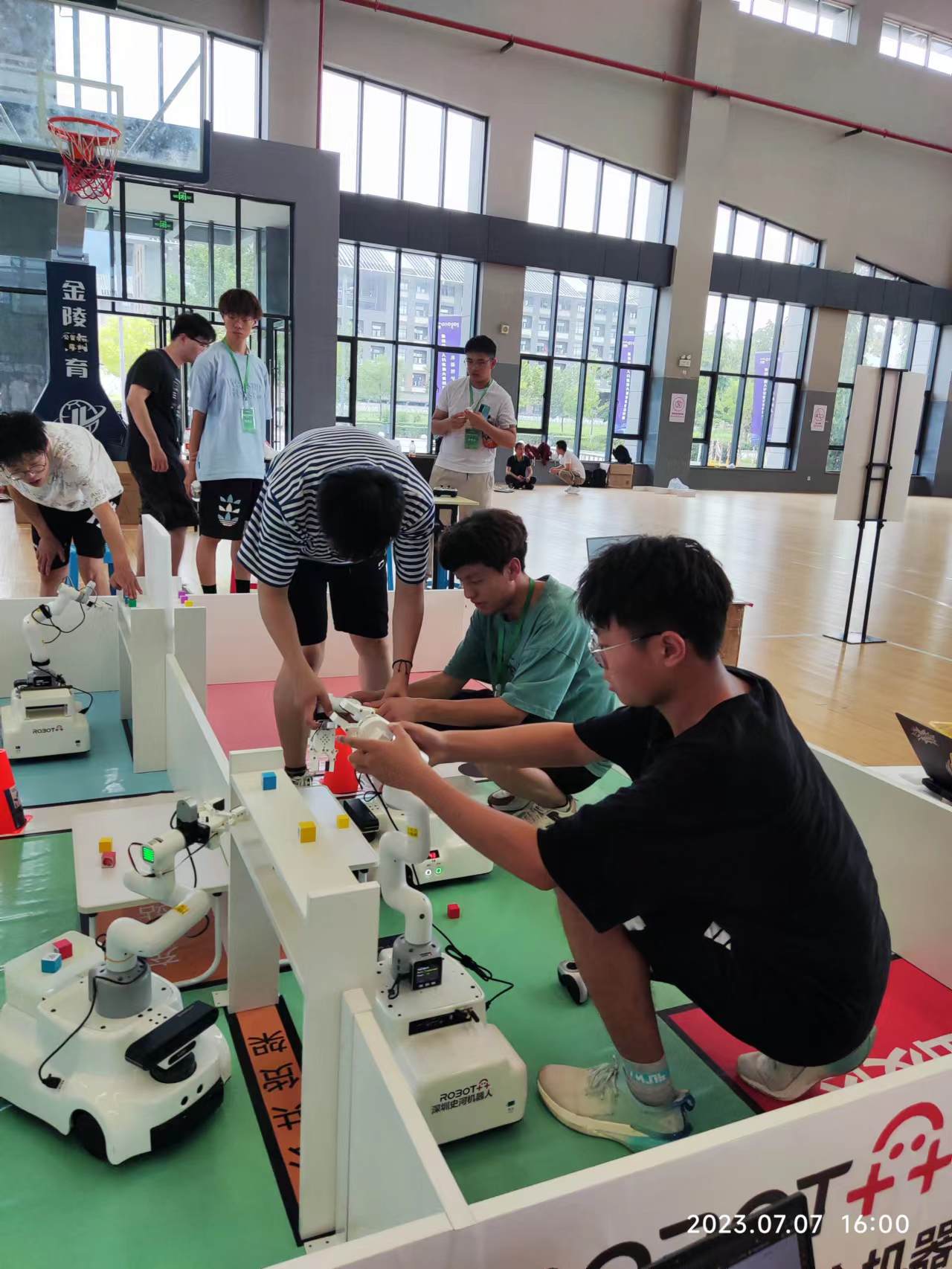 2023睿抗机器人开发者大赛(RAICOM)陕西省赛于2023年7月8日在西安建筑科技大学草堂校区举办。大赛组委会委员、工程训练中心主任陈永当教授、工程训练中心支双双和金大海老师及参赛队员参加了大赛开幕式,陈永当被睿抗机器人开发者大赛省赛组委会聘任为赛事仲裁专家,支双双、金大海被聘任为赛事裁判。睿抗机器人开发者大赛(RAICOM)由工业和信息化部人才交流中心、RoboCom国际公开赛组委会主办,连续多年入选中国高等教育学会《全国普通高校大学生竞赛排行榜》榜单。2023年,大赛以迎接新时代的挑战、培养创新精神为核心,以“机器照护人”为主题,进一步创新赛事形式。本次陕西赛区设置数字创意、编程设计、工程竞技、工程创客4个赛道,参与决赛的作品共400余件。