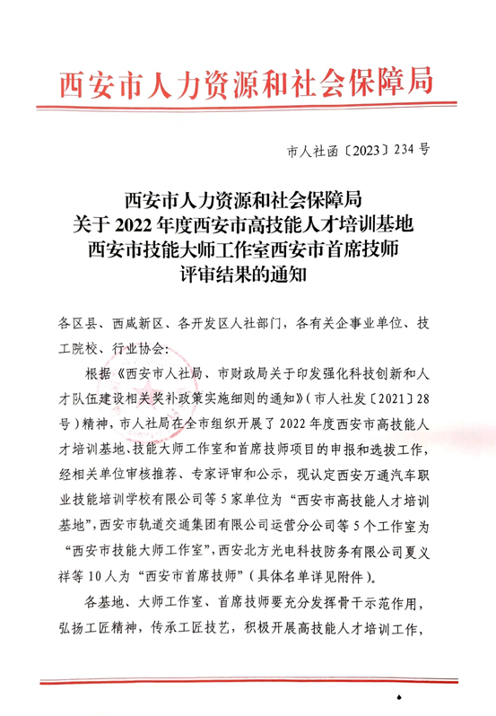 近日,西安市人力资源和社会保障局印发了《西安市人力资源和社会保障局关于2022年度西安市高技能人才培训基地 西安市技能大师工作室 西安市首席技师评审结果的通知》,PP电子工程训练中心教师魏同学荣获“西安市首席技师”荣誉称号,今年全市仅10人获评该称号,这也是PP电子教师首次获得该项荣誉。