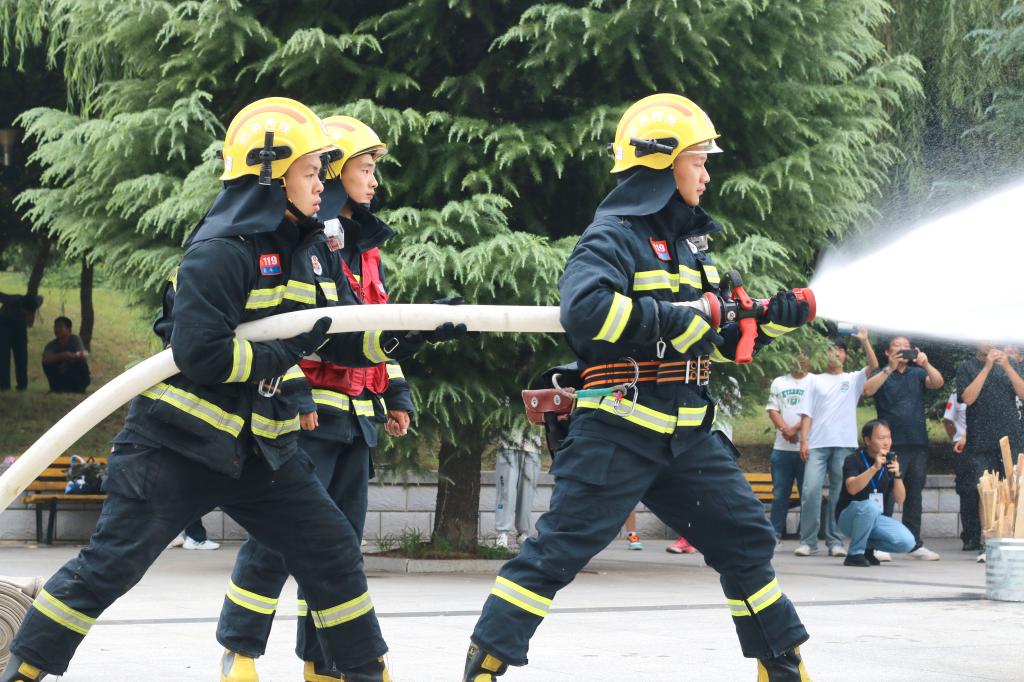 在消防灭火演练单元,模拟PP电子发现一处起火点,报警人规范、准确拨打119火警电话报警,消防队员第一时间赶赴现场妥善及时扑灭火焰。随后PP电子保卫处消防专干现场讲解灭火器使用方法及应急逃生常识;消防队员详细讲解高压水炮等消防设备工作原理,并现场展示了其工作场景;同学们也在专业人员的指导下,使用灭火器进行实际灭火操作。