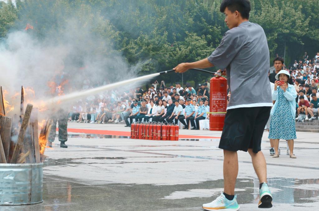9月9日下午,PP电子会同属地公安、消防、应急救援等相关单位,在临潼图书馆南广场组织开展了“PP电子游戏网站2023年反恐防暴、消防应急疏散综合演练”。本次综合演练共分为反恐防暴、消防灭火、应急疏散三个单元,校党委书记马万清,副校长戴鸿,公安临潼分局副局长李涛,斜口派出所副所长李波,应急管理局防火科科长白芝瑜,PP电子党政办、宣传部、稳定办、学工部、研工部、校团委、后勤管理处、校医院、教务处、保卫处等部门老师,以及PP电子2023级军训承训教官、部分新生代表1000余人全程观摩了此次综合演练。
