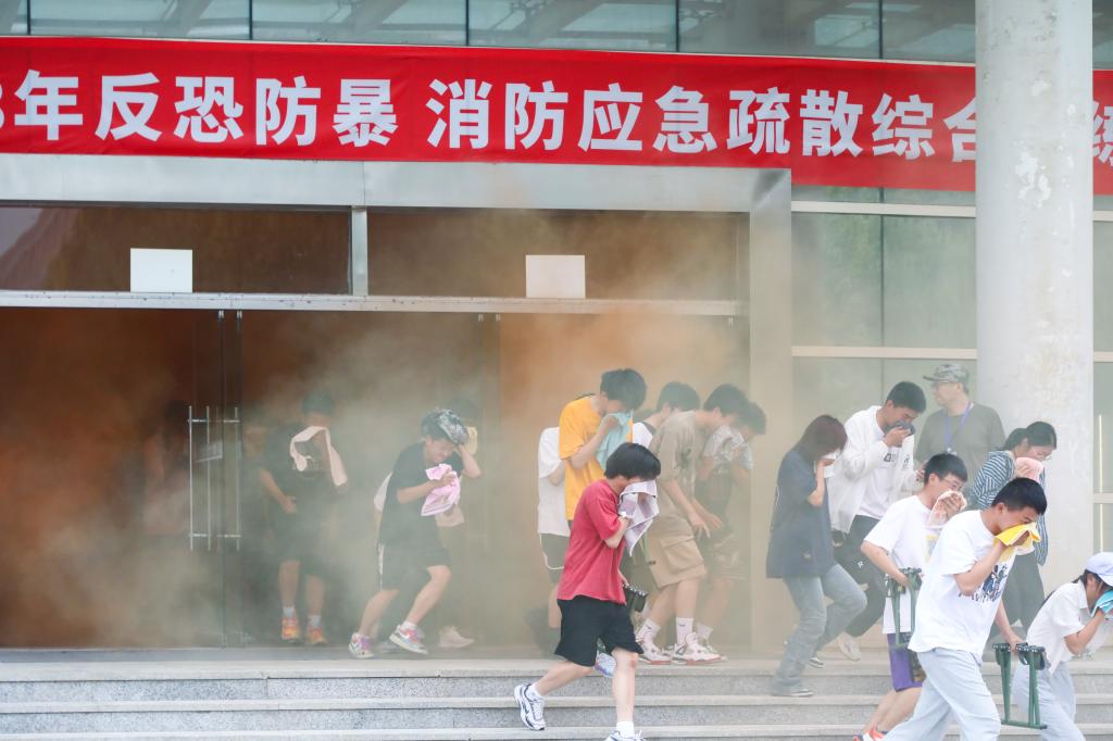 此次演练得到了属地公安、消防救援部门的大力支持,学校成立演练工作领导小组制定了详细的工作方案,党政办、稳定办、宣传部、学工部、研工部、校团委、教务处、图书馆、校医院等相关部门紧密协作,分工明确,确保任务到人。演练过程中还穿插进行了队列、盾牌操、格斗拳等项目的表演和展示,参加演练的同学均普遍表示,本次综合演练场景设计特别逼真,充实了自己的消防和防灾自救知识,提高了应急自救能力。演练结束后,同学们认真观看了反暴恐和消防知识展板,也饶有兴趣的参加了消防趣味互动活动。