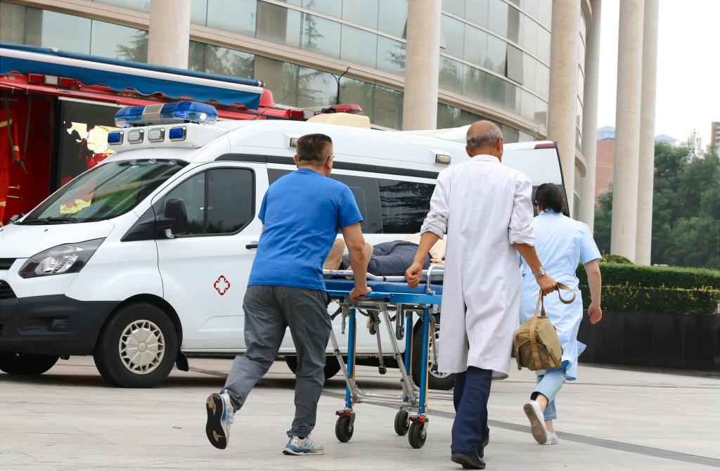 在应急疏散演练单元,“保卫处么?我是图书馆管理员,现在图书馆二楼自习室发生火情,有浓烟产生,请协助报警并速派人来现场处置!”接到报警后,火警警报响起,图书馆值班保安迅速打开消防应急疏散通道,图书馆内学生在老师和图书馆管理人员的指导下降低重心、缓步前行,用毛巾捂住口鼻,沿着演练预案指定疏散通道有序疏散至图书馆南侧广场安全地带。消防车抵达现场喷水救火、消防救援队员及安保队员进入现场救火排险并搜救未撤离人员,一名学生昏迷,医护人员对其进行心肺复苏,待其恢复意识后120救护车将其带回校医院进一步观察。