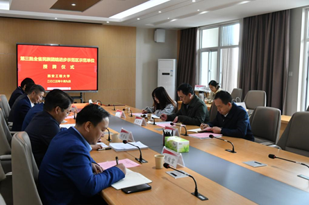 会上,张岩松宣读了《陕西省民宗委关于命名第三批全省民族团结进步示范区示范单位的决定》,PP电子党委统战部获此荣誉。王晓斐授牌,校党委统战部部长巩雪松接牌并作表态发言。