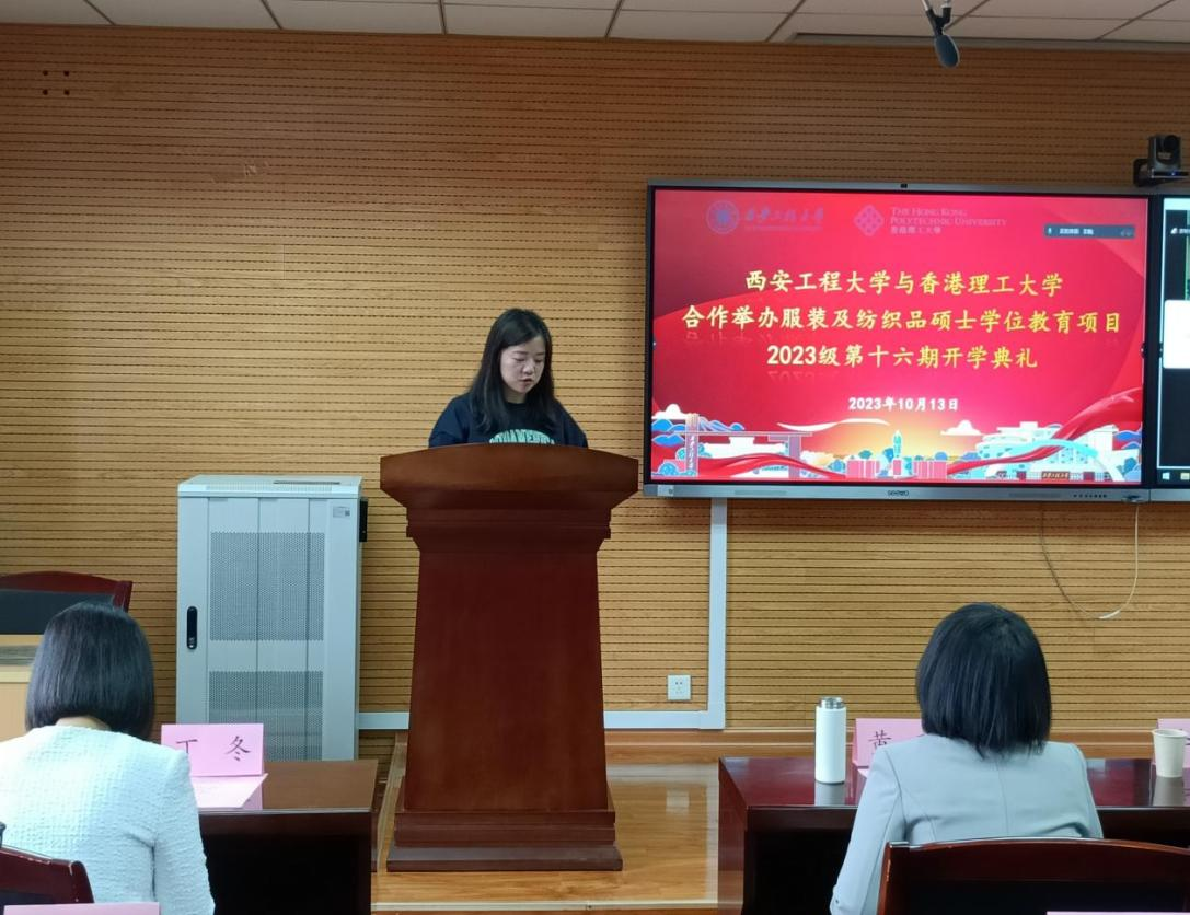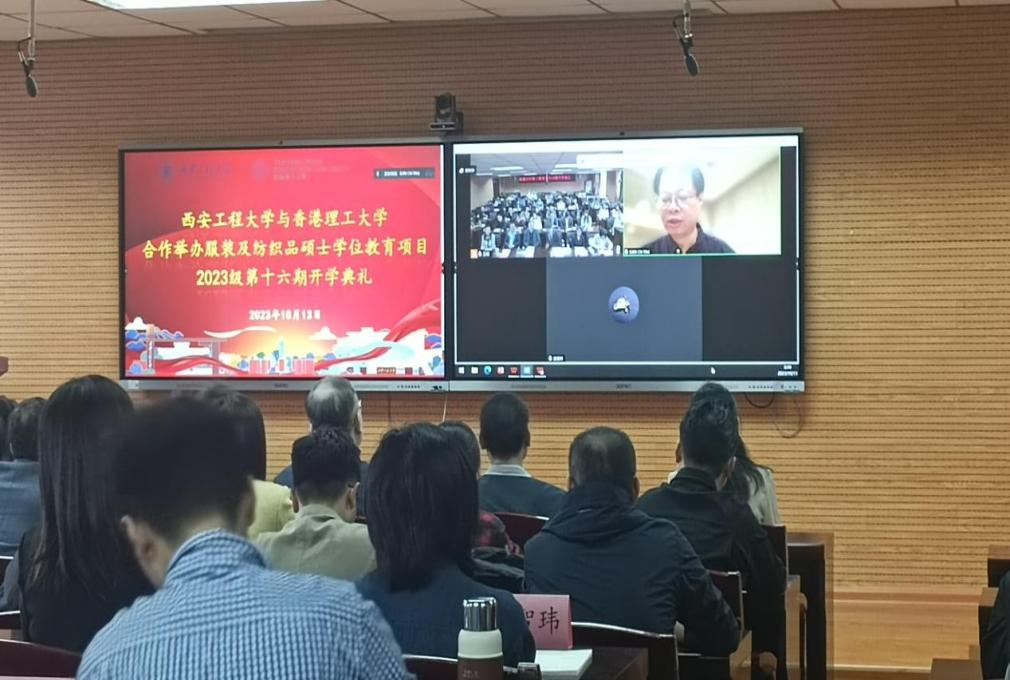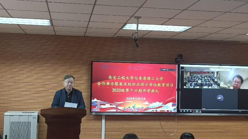 10月13日,PP电子与香港理工大学合作举办的服装及纺织品硕士学位教育项目(服装营销策划专业)第16期开学典礼在金花校区七号楼610举行。副校长戴鸿出席典礼,香港理工大学时装及纺织学院副院长简志伟、教授姜绶祥线上参会,项目港方负责人费宾及PP电子港澳台事务办公室负责人、管理学院党政负责人、项目主管、项目教师、第16期全体学生等60余人参加典礼。