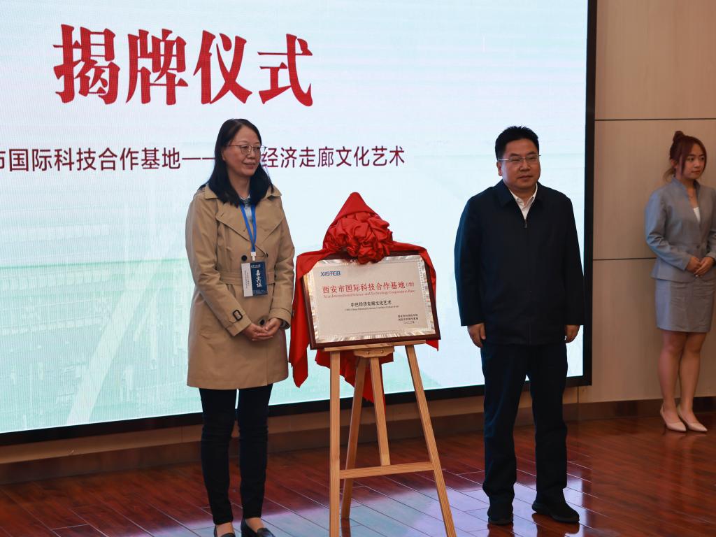 揭牌仪式环节,井浩、夏蔡娟、朱晓冬、徐小娟等为陕西(高校)哲学社会科学重点研究基地“数字文创与艺术形象研究中心”和西安市“中巴经济走廊文化艺术”国际科技合作基地揭牌并启动论坛。