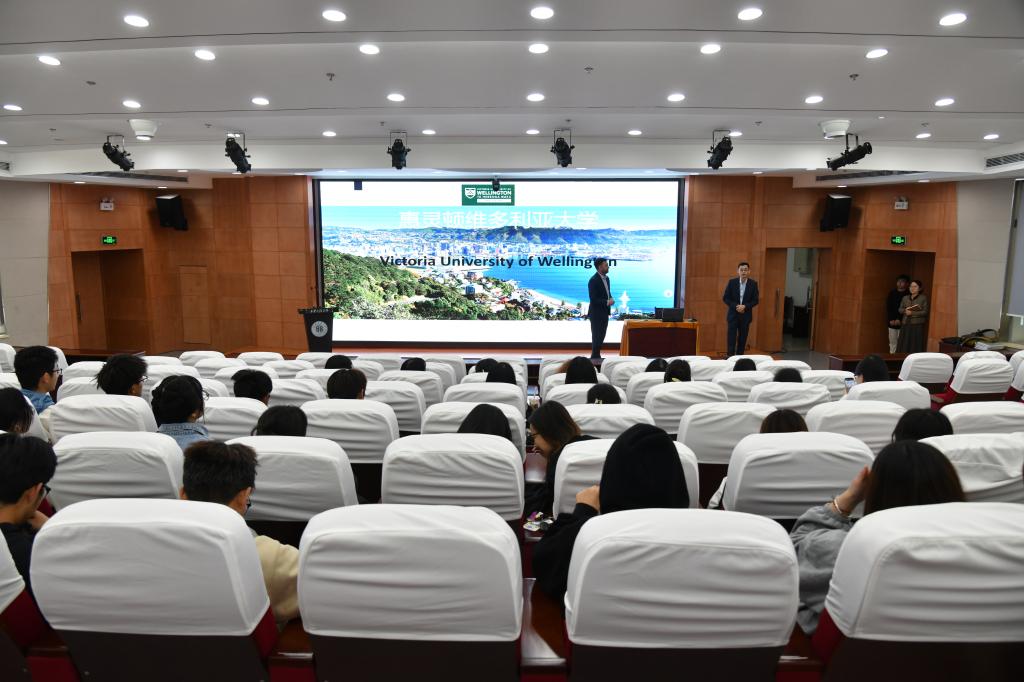 座谈会后,代表团一行在图书馆一楼报告厅召开合作项目宣讲会,近百名本科生和研究生前来参加。代表团详细介绍了赴新西兰留学政策、惠灵顿维多利亚大学办学特色及留学优势,并进行了现场答疑。(撰稿:梁风 审稿:秦伟)