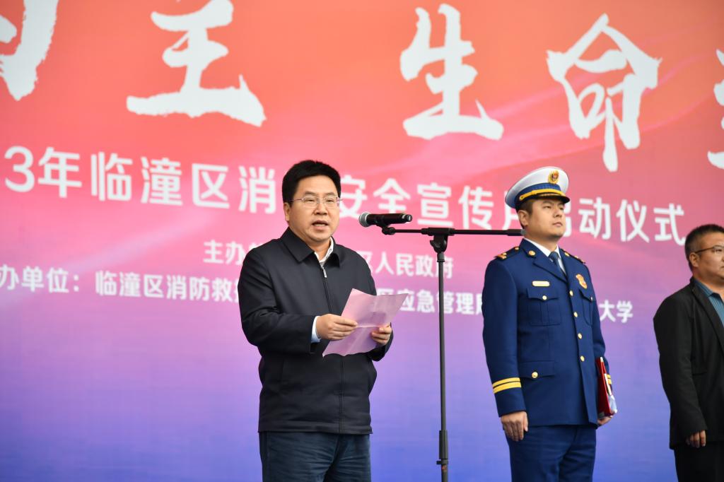 井浩在活动中代表学校向来宾表示热烈欢迎,对临潼区应急管理局、临潼区消防救援大队对学校消防安全一直以来的帮助指导致以由衷感谢。井浩指出,学校是人员高度密集场所,消防安全责任重于泰山,消防工作关系到师生生命健康和校园财产安全,是一项重要且持久的工作。学校消防安全由学校党委牵头抓总、统筹协调,职能部门政策指导、督促检查,二级学院党政同责、主抓落实,形成了各司其职、各负其责、通力合作的工作格局。为了更好地深化此次活动效果,学校相关部门要借此机会创新方法与形式,组织好师生学习践行消防救援相关知识,共同确保校园的安全稳定。(撰稿:闫红洁 审稿:潘光辉)