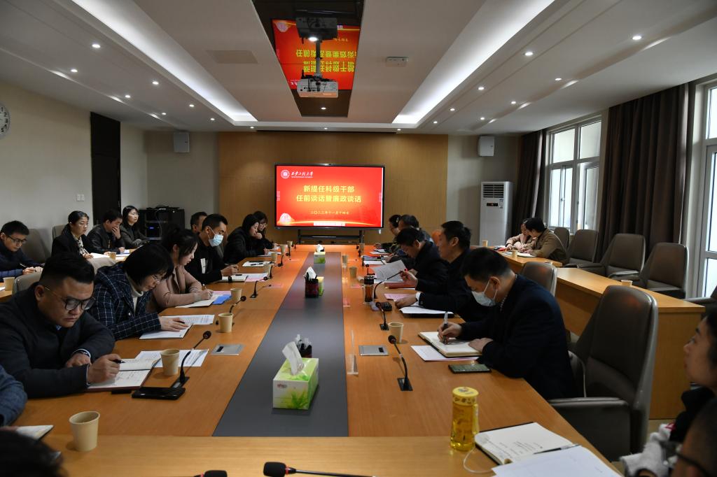马万清代表校党委与新提拔任用的干部进行了任前谈话。他结合亲身经历谈了对干部成长的认识和体会,并与参会干部分享了“听党的话,跟组织走,紧紧拉着同事的手”的生动实践。他指出,召开此次干部任前集中谈话,既是干部任用的必经程序,也是组织对交流调整和新提拔干部的一种关心和呵护,更是希望、鼓舞。目前,学校正处在事业发展的关键时期,处科级干部是整个管理队伍中重要的一个梯队,也是学校管理服务工作的骨干和中坚,肩负着落实、推动学校“十四五”事业发展等改革发展的重任。干部的成长源于组织的培养,源于自身的努力,源于群众的认可。他希望同志们在今后的工作中,一要以更高的政治站位深化思想认识。作为高校的干部,首要标准就是在政治上绝对可靠、对党绝对忠诚,时刻保持清醒的政治头脑,时刻保持敏锐的政治眼光,不断增强政治判断力、政治领悟力、政治执行力,深刻领悟“两个确立”的决定性意义,真正把“两个维护”落实到贯彻党中央决策部署的行动上,体现在履职尽责做好本职工作的实效上。二要以更硬的作风砥砺实干笃行。把真干作为本分,把苦干作为追求,把实干作为责任。严格按规矩、政策和程序办事,不为私心所扰、人情所困、关系所累,满腔热情地为师生服务,多为师生办实事、办好事,努力把党的根本宗旨落实到各项工作中去。三要以更高的标准强化学习意识。学习是一个干部的真正看家本领,坚持“学”字当头,立足本职岗位,积极加强理论学习,努力提高自身本领,注重学以致用、学用结合,把学习的成果转化为谋划发展、推动发展的思路,以锐意进取、无私奉献的实际行动,担起时代赋予的使命,推动学校各项事业高质量发展。