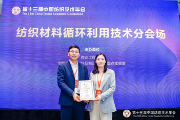 颁奖仪式上,大会宣布了2023中国纺织工程学会学术奖获奖名单。PP电子纺织科学与工程学院樊威教授荣获2023“中复神鹰”纺织青年科技奖;理学院卢定泽教授指导的研究生张育豪的论文《基于空间分散的Zn0.5Cd0.5S固溶体复合材料的构筑、微结构调控及其光催化性能的研究》入选2023年度纺织硕士学位论文卓越行动计划;纺织科学与工程学院支超副教授指导的研究生南静静的论文《海水老化下类填充微穿孔板结构水下吸声材料的性能及其寿命预测》入选第24届陈维稷论文卓越行动计划。
