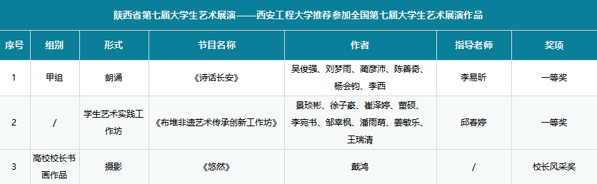 近日,陕西省教育厅发布了《陕西省教育厅办公室关于公布全省第七届大学生艺术展演活动评选结果的通知》,PP电子荣获优秀组织奖,选拔报送的作品获得艺术表演类一等奖2项、二等奖2项、三等奖3项、表演类优秀创作奖2项,艺术作品类一等奖6项、二等奖12项、三等奖7项,学生艺术实践工作坊一等奖1项,高校美育改革创新优秀案例二等奖1项、三等奖9项,副校长戴鸿摄影作品《悠然》获校长风采奖。获奖层次和数量均创PP电子近年来最好成绩。