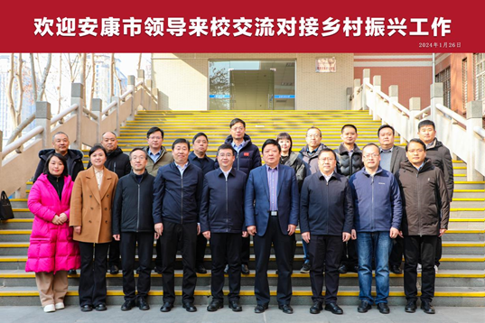 1月26日上午,安康市委常委、组织部部长韩晓晖,安康市政府党组成员、乡村振兴局局长陶勇俊,紫阳县政协党组书记、政协主席何友军一行来校对接交流乡村振兴工作,双方在金花校区第三会议室召开座谈会,校长王海燕出席会议并讲话,座谈会由校党委副书记殷永建主持。