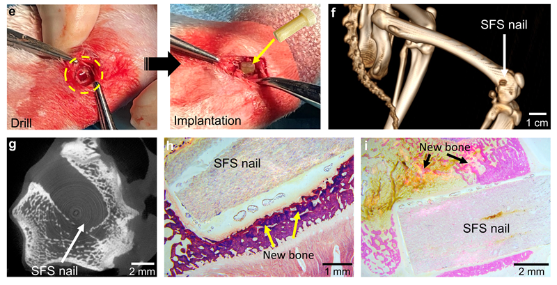 樊威教授团队联合清华大学张莹莹教授团队针对目前骨外科手术中应用金属与合金(~110 GPa)人造骨和人体骨(3~20 GPa)之间的弹性模量相差较大,会发生应力屏蔽效应,植入体内后难以降解,需要进行二次手术的问题,巧妙的利用了蚕丝(Silk II结构)与丝素(Silk I结构)之间结晶度的差异,将脱胶蚕丝织物与再生丝素热压制备了一种丝素自增强复合材料(SFS)。SFS通过调整增强体结构与基体的比例,可以定制其力学性能和密度,以适应人体不同部位骨植入的要求。更重要的是,SFS具有促进成骨细胞增殖和提高成骨细胞活性的能力,并且可随着骨愈合在体内逐渐降解,无需二次手术切除,避免了患者的二次疼痛,节省了医疗费用。SFS具有取代传统金属或陶瓷植入物的巨大潜力,因此,该项工作得到了国家自然科学基金、陕西省杰出青年科学基金、陕西省高校青年创新团队与西安市中心医院项目的支持。
