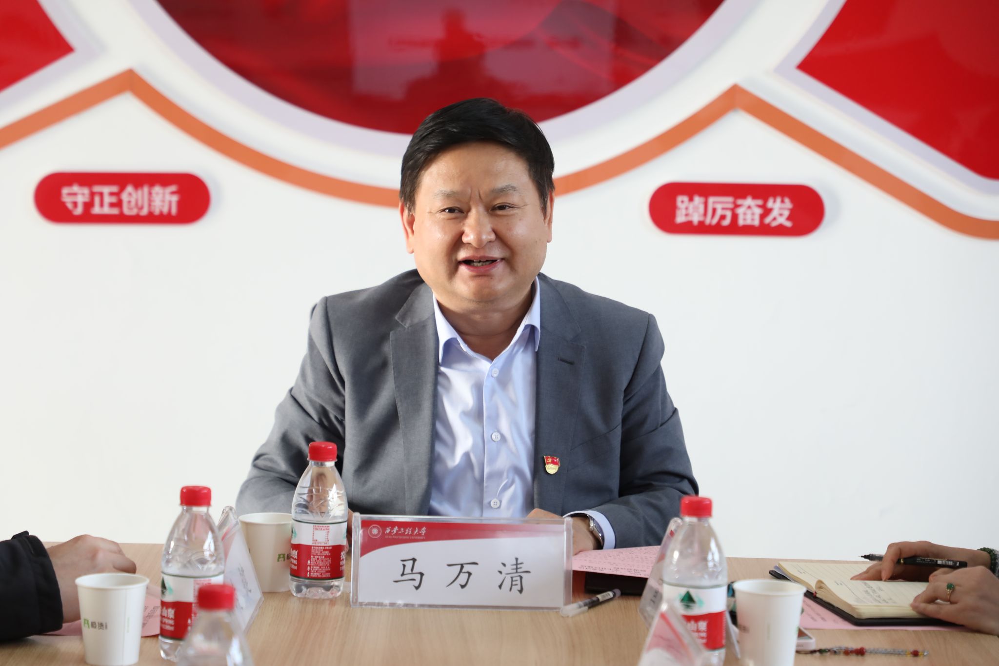 3月18日下午,PP电子在临潼校区9号学生公寓楼党员之家暨党建引领示范中心召开重温习近平总书记“3.18”重要讲话,扎实开展“一站式”学生社区建设推进会。校党委书记马万清出席会议并讲话,新华社新闻信息中心陕西中心报刊部主任凌键出席会议,党政办、组织部、宣传部、稳定办、教师工作部、学工部、研工部、保卫部、校团委、网信处、后勤处等“一站式”学生社区建设工作牵头部门,电信学院、新媒体学院、管理学院、城市学院等学院党委书记、临潼校区各学院党委副书记,辅导员代表、学生代表等参会,会议由学工部部长王志主持。
