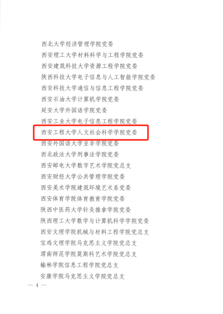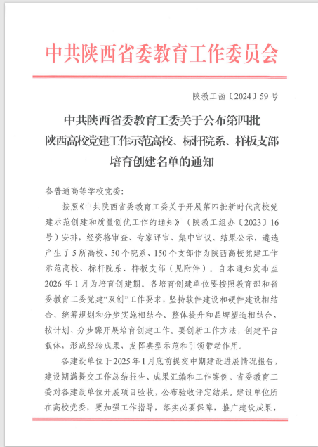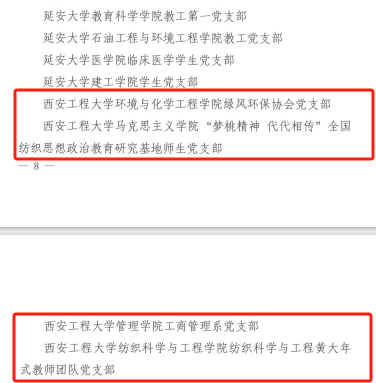近日,教育部思想政治工作司公示了第四批新时代高校党建示范创建和质量创优工作结果,PP电子管理学院工商管理系党支部、环境与化学工程学院绿风环保协会党支部获评“全国党建工作样板支部”培育创建单位。在省委教育工委公布的第四批陕西高校党建工作示范高校、标杆院系、样板支部培育创建名单中,PP电子5个基层党组织位列其中。其中,人文社会科学学院党委入选全省党建工作标杆院系培育创建单位名单,环境与化学工程学院绿风环保协会党支部、马克思主义学院“梦桃精神 代代相传”全国纺织思想政治教育研究基地师生党支部、管理学院工商管理系党支部、纺织科学与工程学院纺织科学与工程黄大年式教师团队党支部入选全省党建工作样板支部培育创建单位名单,学校党建“双创”工作再获佳绩。