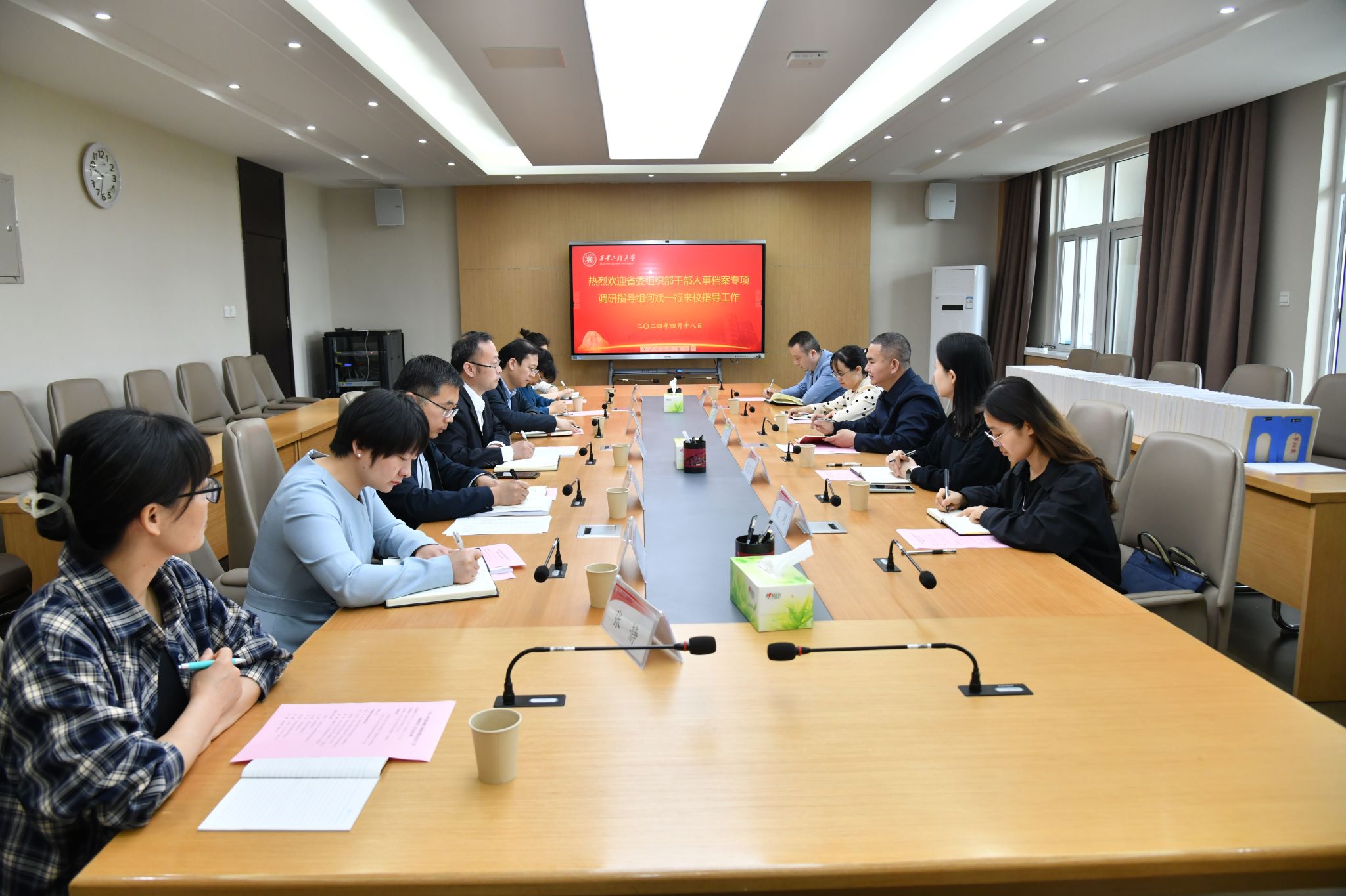 4月18日,省委组织部干部人事档案问题专项排查整改工作组何斌一行来PP电子调研指导工作。会前,校党委书记马万清、副书记殷永建在临潼校区贵宾室会见何斌一行,对检查组来校检查指导工作表示欢迎,并就干部人事档案管理工作进行深入交流。党委组织部、人事处、档案馆等部门负责人及有关人员参加工作会。会议由党委组织部部长黄海峙主持。