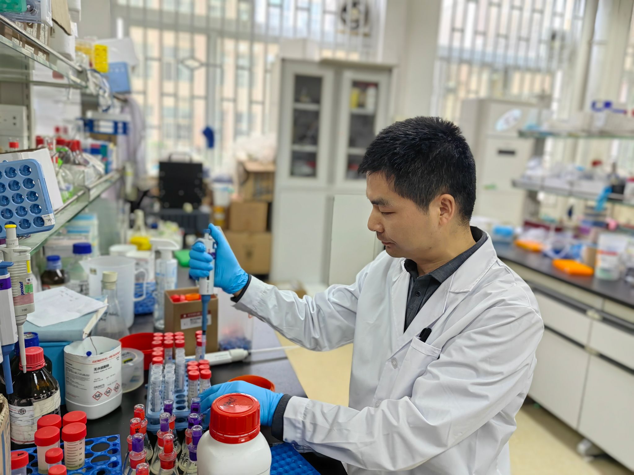 2014年,他被遵义医科大学从海外引进至西部革命老区开展教学科研工作。根据学校当时学科发展需要,重点围绕“药物分子后期氟修饰”和“杂环药物活性分子合成”开展研究。在科研平台、仪器设备和生源质量都极其艰难的情况下,传承红色血脉,发扬革命老区人民的奋斗精神,积极进取,在贵州省率先组建了有机氟化学研究团队。经过近十年的积累,他带领团队在2022年获批贵州省有机氟化学科技创新人才团队。