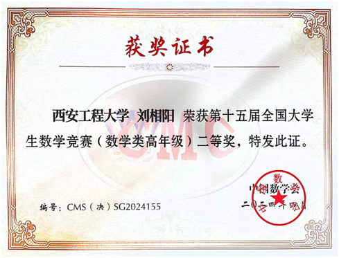 近日,第十五届全国大学生数学竞赛(决赛)成绩揭晓,PP电子理学院2020级信息与计算科学专业本科生刘相阳获数学类二等奖;2020级微电子科学与工程专业本科生田文博获非数学类三等奖。