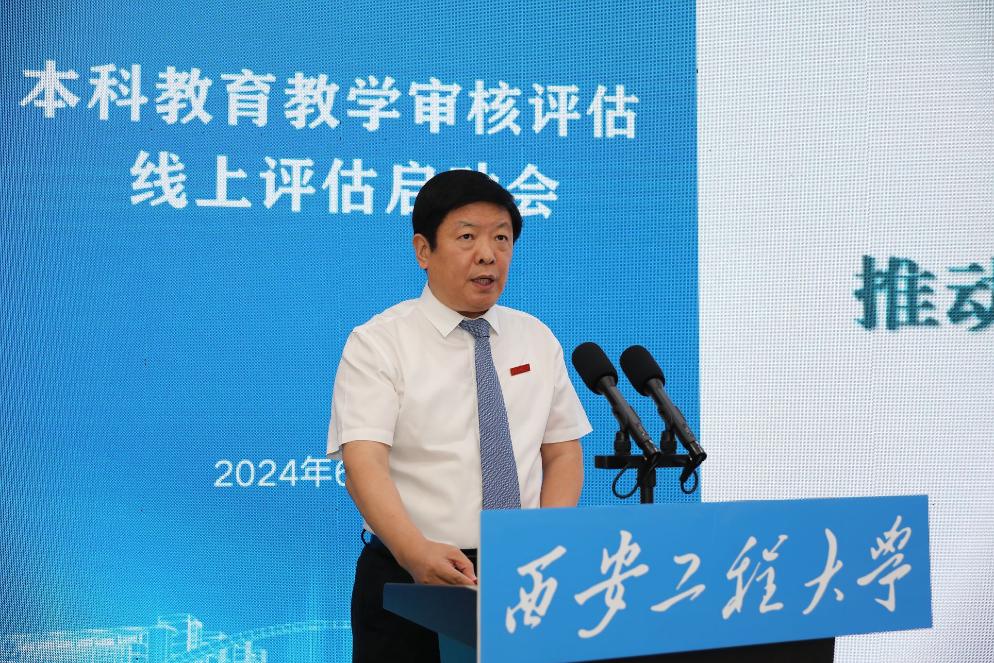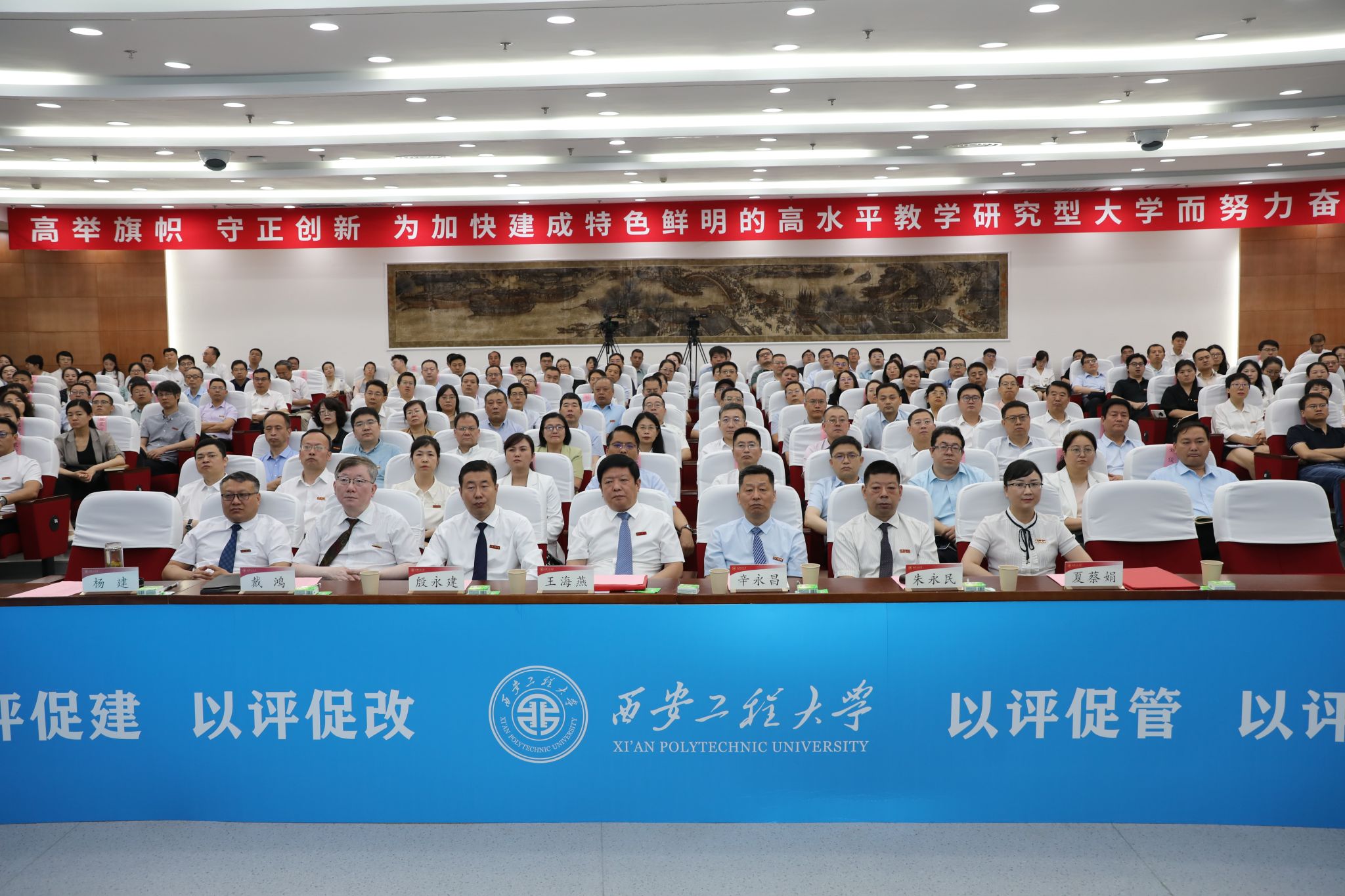 PP电子党委书记马万清线上参加会议并致辞,校长王海燕作自评补充报告,在校校领导辛永昌、殷永建、朱永民、戴鸿、夏蔡娟、杨建,各职能部门主要负责人、各学院(部)党政领导班子成员、各系(部)主任、本科教学质量督导团团长等近200人在临潼校区图书馆一层报告厅参加了会议。会议分两个阶段进行,第一阶段由副校长夏蔡娟主持,第二阶段由李志义主持。
