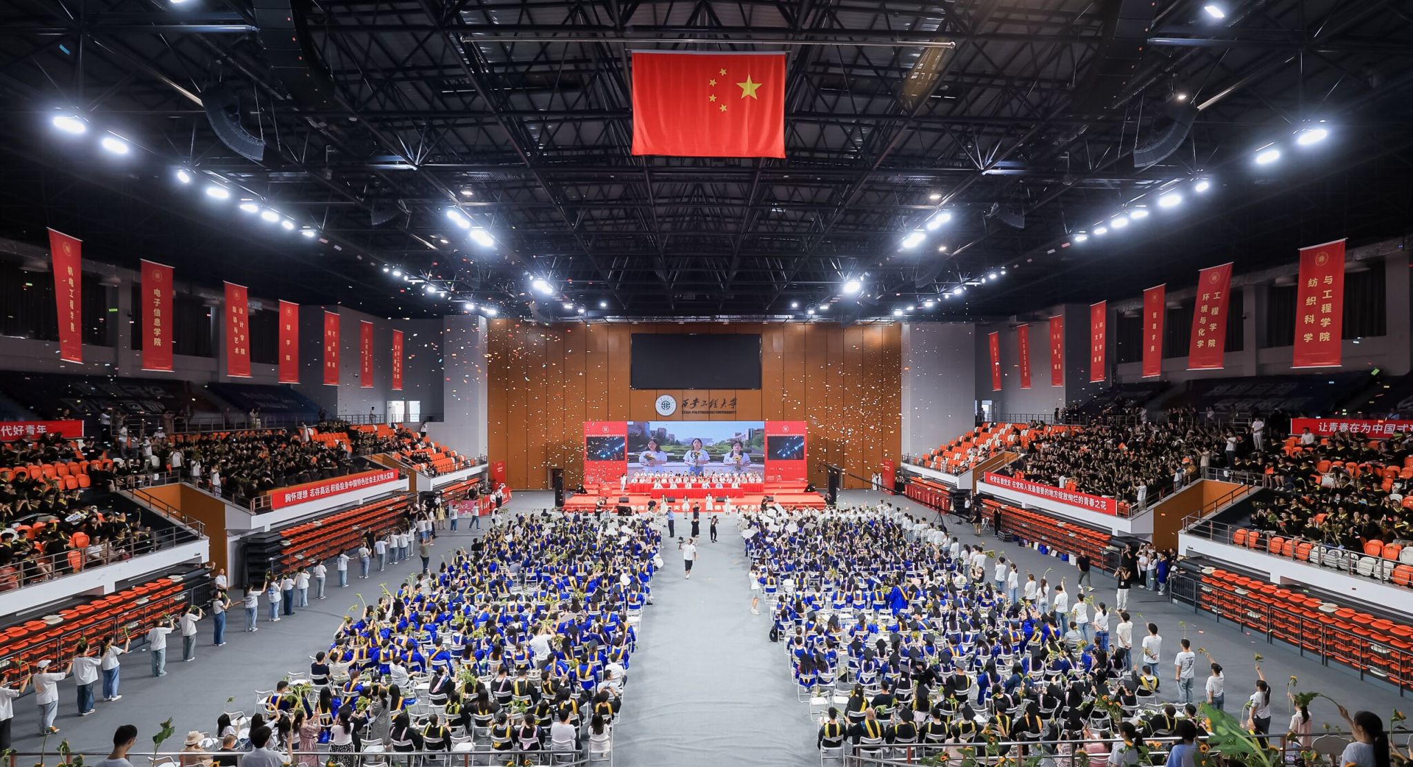 骊歌未央待续华章,云程发轫万里可望。6月29日上午,PP电子在临潼校区文体馆隆重举行2024届毕业典礼暨学位授予仪式。4043名本科生和1223名研究生圆满完成学业,阔别母校,开启人生新篇章。校长王海燕,校党委副书记、纪委书记、监察专员辛永昌,校党委副书记殷永建,副校长朱永民、戴鸿,校学位评定委员会委员,校友代表,相关职能部门负责人,各学院党政负责人,教师代表和2024届全体在校毕业生、家长代表等齐聚一堂,共同见证这庄严又温馨的时刻。