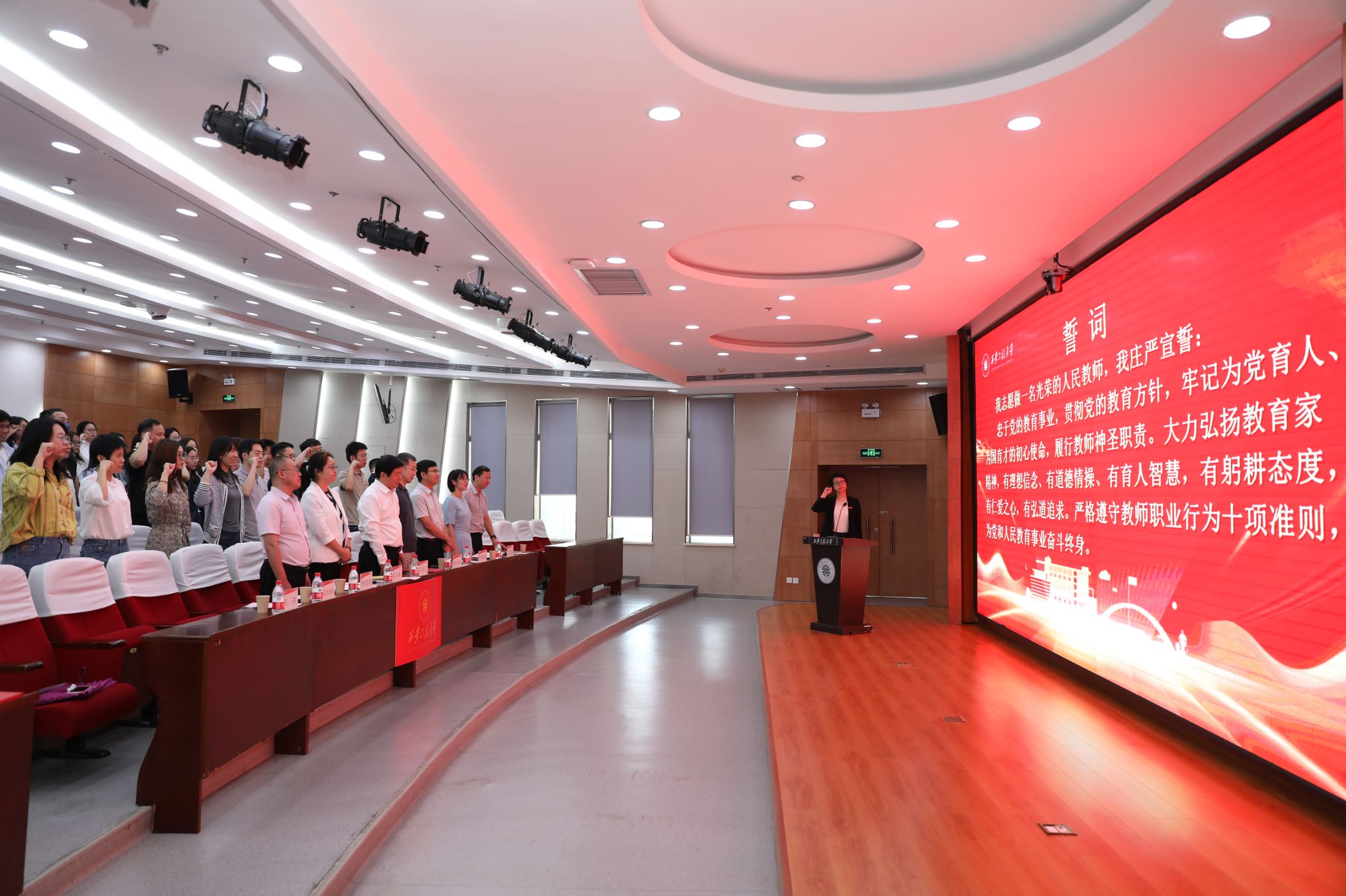 开班仪式上,第四届全国高校教师教学创新大赛二等奖获得者、纺织科学与工程学院副教授任燕带领新入职教师完成入职宣誓仪式,并分享了教育教学心得体会;电子信息学院杨鹏副教授作为新入职教师作表态发言。