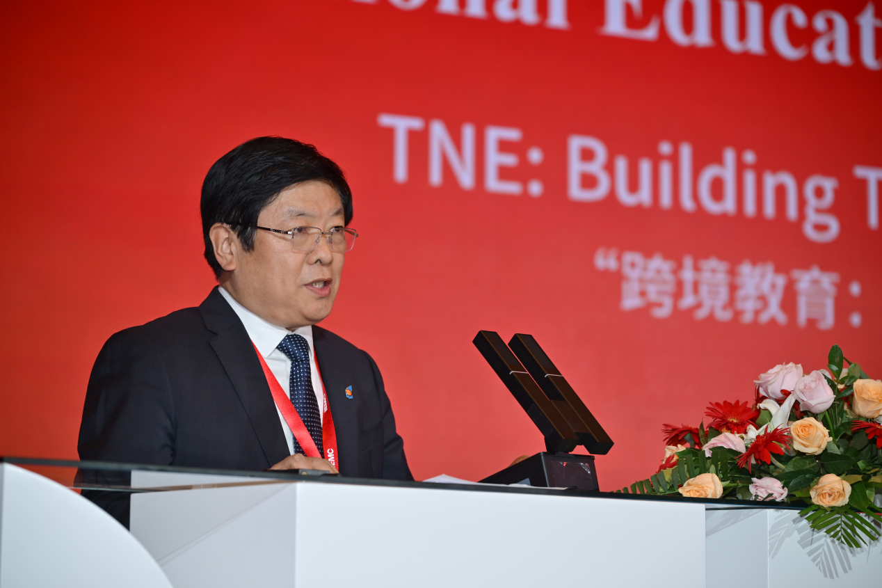主旨演讲中,王海燕介绍了PP电子历史沿革和办学特色,分享了近年来学校在国际化人才培养、国际合作科学研究、多领域国际合作与交流等方面取得的成就,分析了当前跨境教育所面临的机遇与挑战。他表示对跨境教育的美好未来充满信心,学校将充分发挥国际交流与合作的大学职能,推进跨境教育开创新局面、取得新成效。