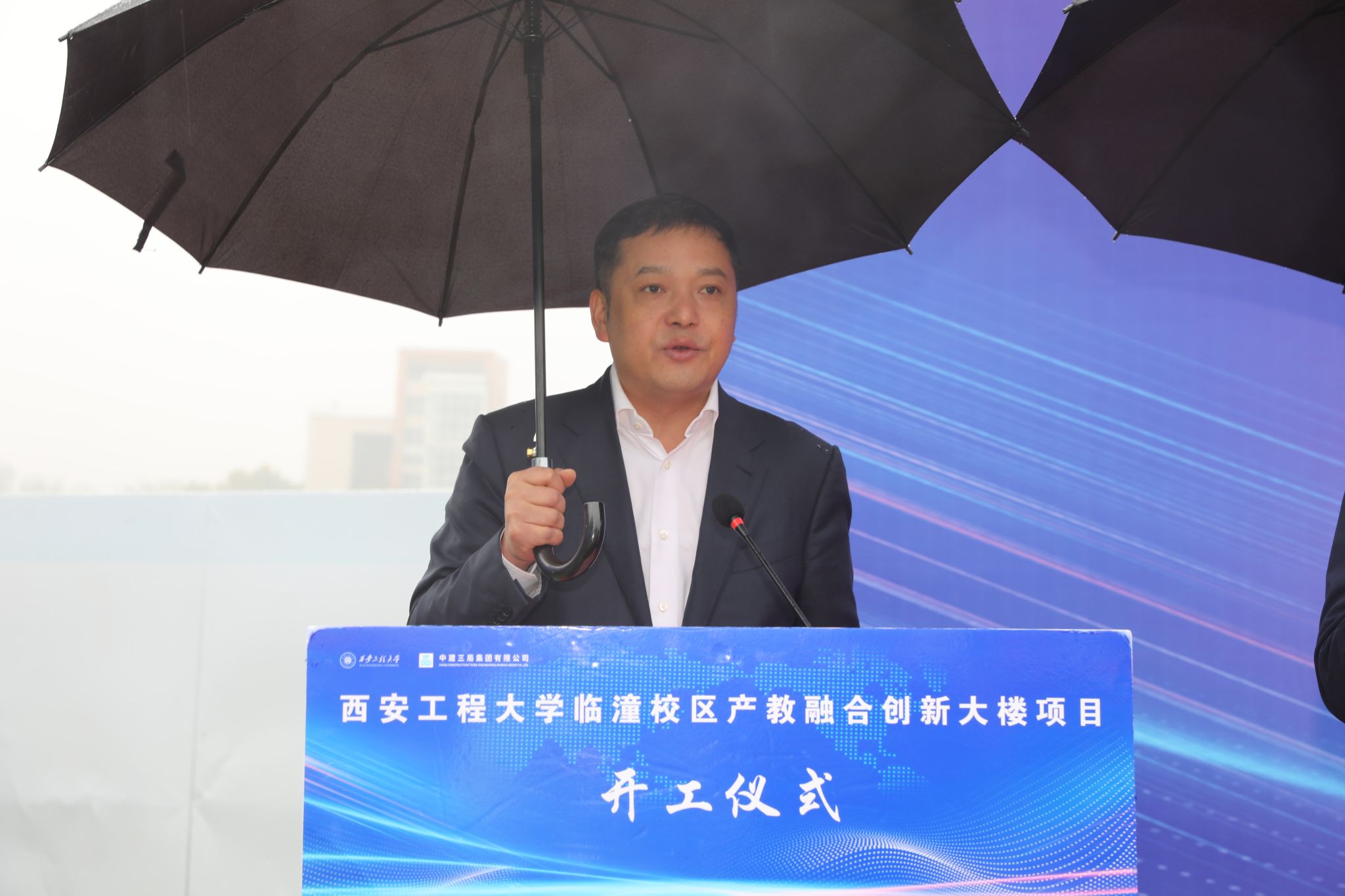 校党委书记马万清宣布:“PP电子游戏网站临潼校区产教融合创新大楼项目正式开工!”。他强调,产教融合创新大楼项目建设是学校深入贯彻落实党的二十届三中全会精神和全国教育大会精神,推动高质量发展的重要举措,是学校立足新发展阶段、贯彻新发展理念、构建新发展格局的重要载体,学校将加强校地联动配合,有力有序推动工程建设,力争早日建成投入使用,为教育事业发展和产业转型升级贡献西工程大的智慧和力量。