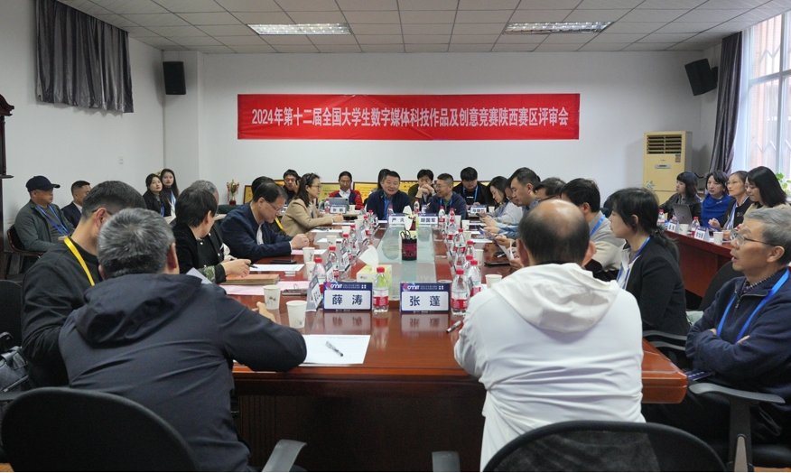 陕西省赛区专家委员会秘书长、PP电子新媒体艺术学院副院长丛红艳主持大赛评审工作并详细介绍了工作相关事宜;黄向东教授对本次大赛的主题和宗旨作了解释说明,并分享了自己在数字媒体科技教育领域的实践经验和心得体会;全国大学生数字媒体科技作品及创意竞赛秘书长、北京印刷学院刘华群教授通过视频连线对大赛评审工作提出要求;新媒体艺术学院党委书记张瑾参加会议。
