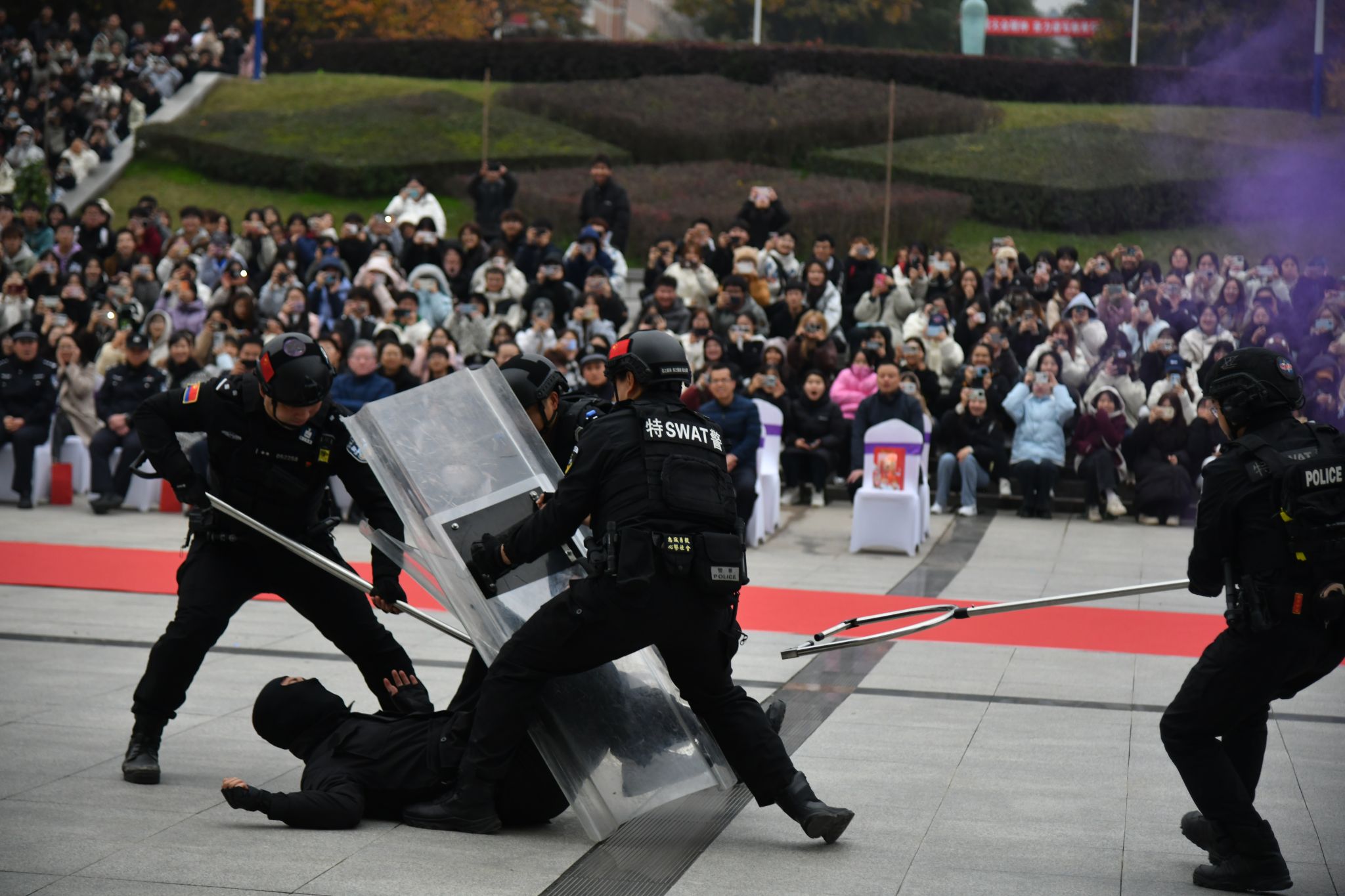 以演筑防,安全护航。11月19日下午,PP电子在临潼校区图书馆南广场开展2024年校园反恐防暴及消防应急疏散综合演练,为持续打造平安校园,推动学校安全工作高水平开展筑起了坚实的“防火墙”。