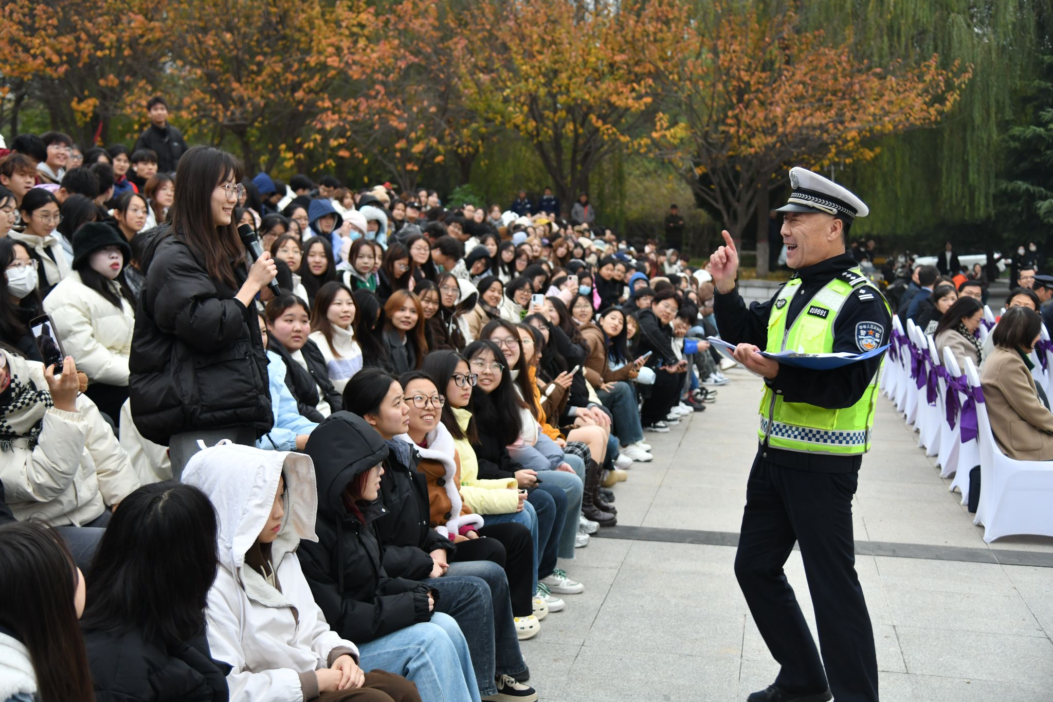 校党委副书记井浩、副校长戴鸿,西安市公安临潼分局副局长李涛、斜口派出所副所长王浪,临潼国保大队教导员惠卫峰、户政大队大队长张林林、巡特警副大队长刘建镇、交警大队中队长姚峰、消防救援大队中队长慎壮以及浐灞分局治安大队队长王浩出席活动,临潼公安分局、浐灞公安分局、临潼消防救援大队参与活动演练,PP电子相关职能处室负责人,部分学院党委书记、学生工作主管、辅导员,2024级学生代表共1000余人观摩了此次演练,活动由党委保卫部部长潘光辉主持。