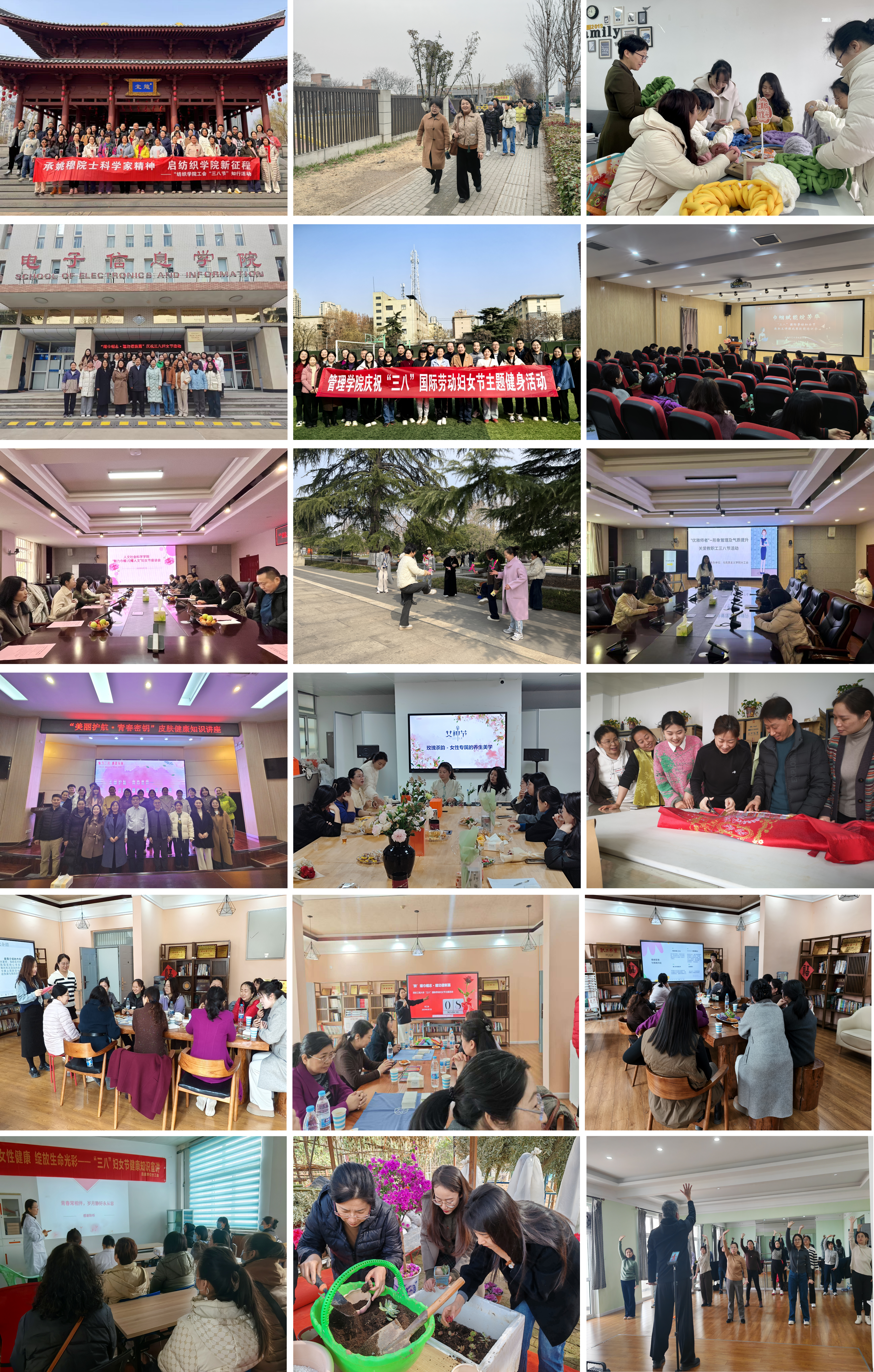 在“文体活动篇章”中,校工会、体育部邀请PP电子张小军老师开展八段锦健身活动,吸引了众多女教工积极参与;校工会、学工部联合举办“玫瑰书香”共读一本书活动,大学生心理健康教育与咨询中心刘蓉老师与女教职工们共同阅读分享了洛莉·戈特利布著作《也许你该找人聊聊》,帮助女教职工们更好地理解自己、接纳自己和关爱自己。城市规划与市政工程学院分工会举办了玫瑰茶韵·雅集芳华“三八”妇女节品茗及茶艺讲座,让女教职工们在学习茶文化知识、体验茶艺乐趣的过程中放松身心,陶冶情操。后勤分工会举办“指尖多肉艺 魅力女神节”多肉植物种植活动,女职工制作属于自己的“迷你盆栽”,感受种植的乐趣和春天的气息。机关一机关二分工会、计算机科学学院分工会、机电工程学院分工会、纺织科学与工程学院分工会、管理学院分工会组织女教职工到兴庆公园、两校区操场等地开展春日徒步活动;计算机科学学院分工会、管理学院分工会、电子信息学院分工会开展了踢毽子、跳绳、羽毛球、保龄球、跑步等趣味体育运动。