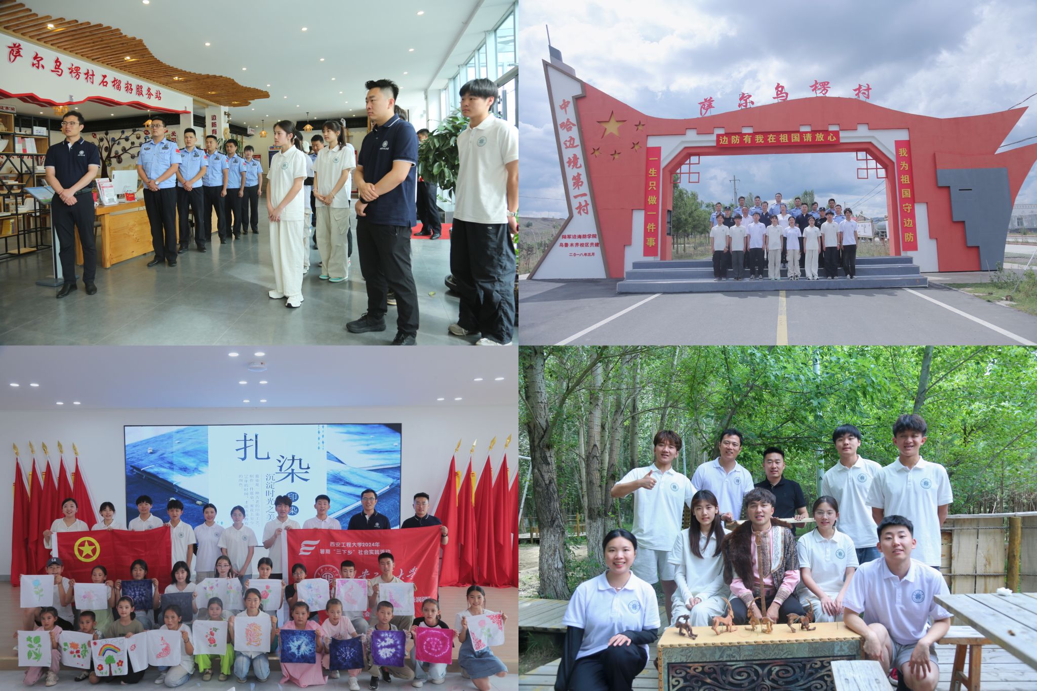 2024年暑期,“纺织助疆、志愿援疆、文化润疆”实践团赴新疆阿勒泰地区吉木乃县开展社会实践,学子们在“中哈边境第一村”萨尔乌楞村党群服务中心学习习近平总书记给萨尔乌楞村全体村民的回信;走访当地根雕和刺绣手艺人工作坊,深入了解“传统工艺+非遗美育+民族特色+时尚制作”的新发展模式;与托普铁热克镇文明路社区、托斯特乡塔斯特村共建“大学生社会实践与志愿服务基地”;参观186团戍边纪念馆、吉木乃国门,拜访全国人大代表和退役海军辽宁舰操舵手。通过一堂堂爱国主义教育“大思政课”的洗礼,实践团把青春绽放在吉木乃县这片热土,获评了陕西省“三下乡”暑期社会实践“省级标兵团队”。