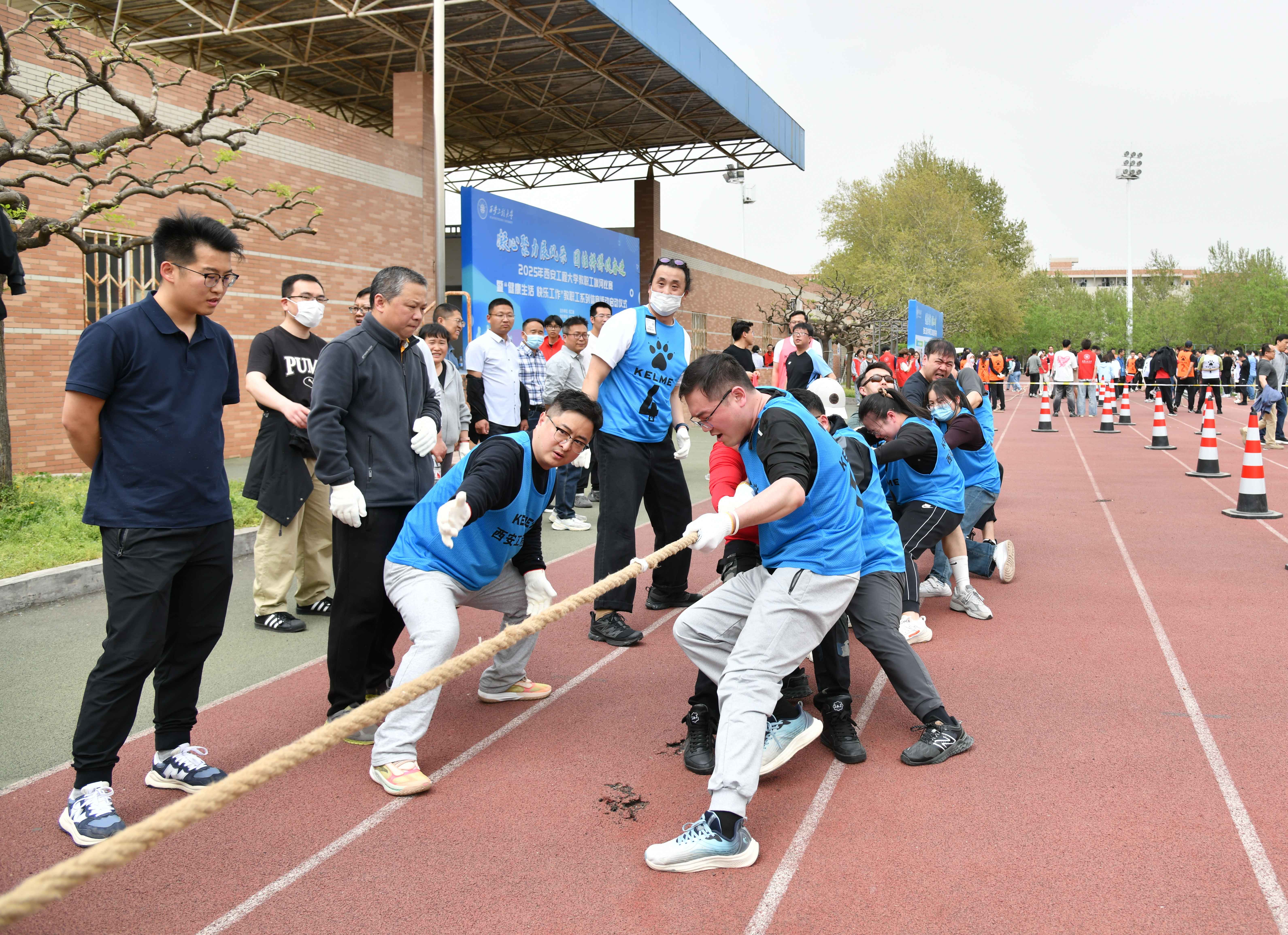 4月9日,由校工会主办的2025年教职工拔河比赛暨“健康生活 快乐工作”教职工系列体育活动启动仪式在临潼校区骊霞体育场举行。本次比赛是学校教职工全年体育活动的开端,彰显了学校对教职工身心健康的重视,传递了“健康生活,快乐工作”的理念。校领导马万清、井浩、殷永建、朱永民、张洛红出席活动。