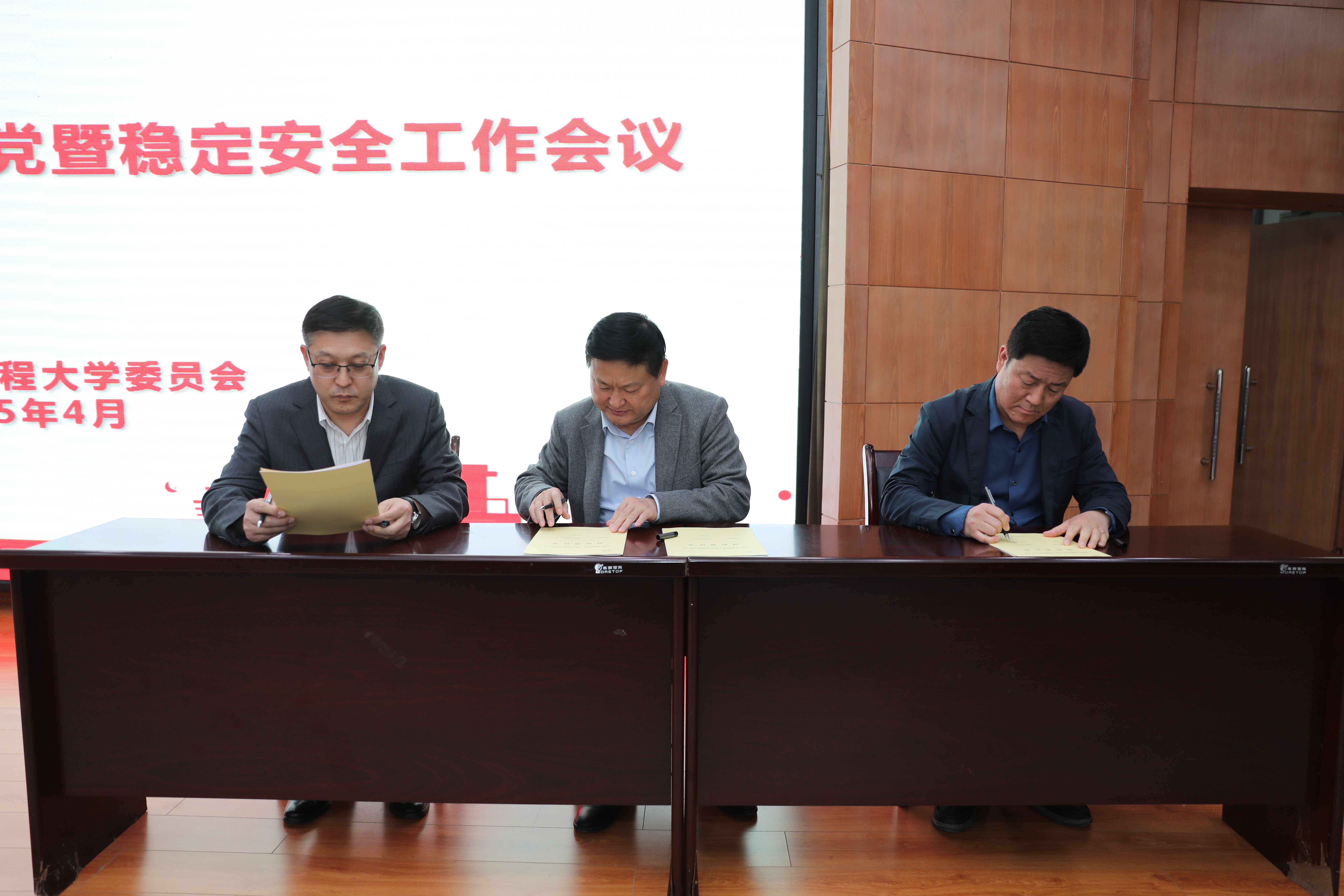 校党委副书记井浩回顾了过去一年来学校稳定安全工作取得的成绩,分析了当前稳定安全形势和存在问题,并从思想重视、狠抓落实、加强预防等三个方面对全校2025年稳定安全工作进行了安排部署;校党委副书记、纪委书记、监察专员辛永昌在总结2024年学校纪检监察工作成效的基础上指出了存在不足,并从强化政治监督、风腐同查同治、巩固党纪学习教育成果、深化体制改革、强化自身建设等五个方面对2025年纪检监察重点工作进行了安排部署;校党委副书记殷永建传达了2025年全省教育系统全面从严治党工作会议、稳定安全工作会议等上级相关要求精神。