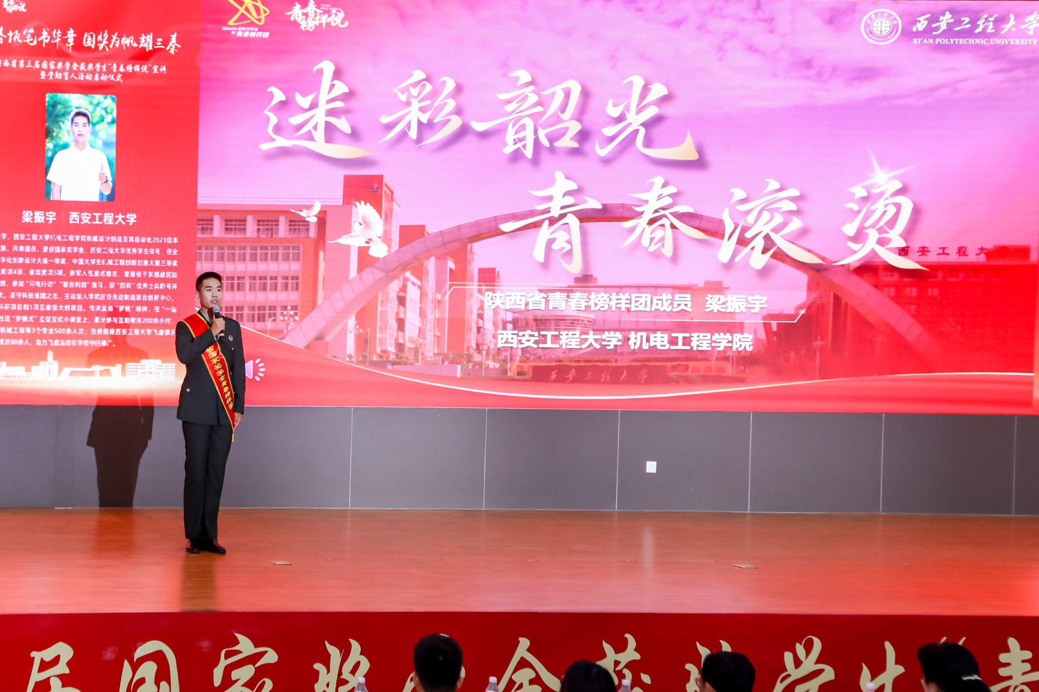 5月28日,由陕西省委教育工委、省教育厅主办的陕西省第三届国家奖学金获奖学生“青春榜样说”宣讲暨资助育人活动启动仪式在西安理工大学举办,PP电子机电工程学院本科生梁振宇作为“青春榜样团”成员进行宣讲。校党委宣传部、学生工作部(处)、财务处、机电工程学院等相关单位负责人出席活动。PP电子设校内分会场并同步直播。