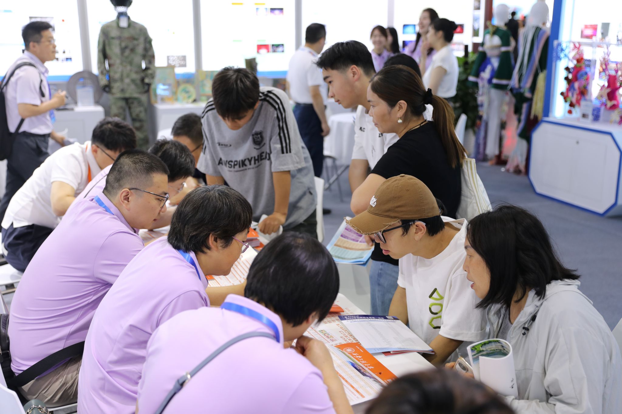 本届教博会以“AI赋能教育发展,推动教育强省建设”为主题,组织了“四展示两活动”,即教育博览会主题展、高校“大思政课”建设成果展、高校科技成果展、研究生创新成果展、校企对接洽谈活动、高等学校招生咨询活动,吸引了近300所高校及留学机构参展。