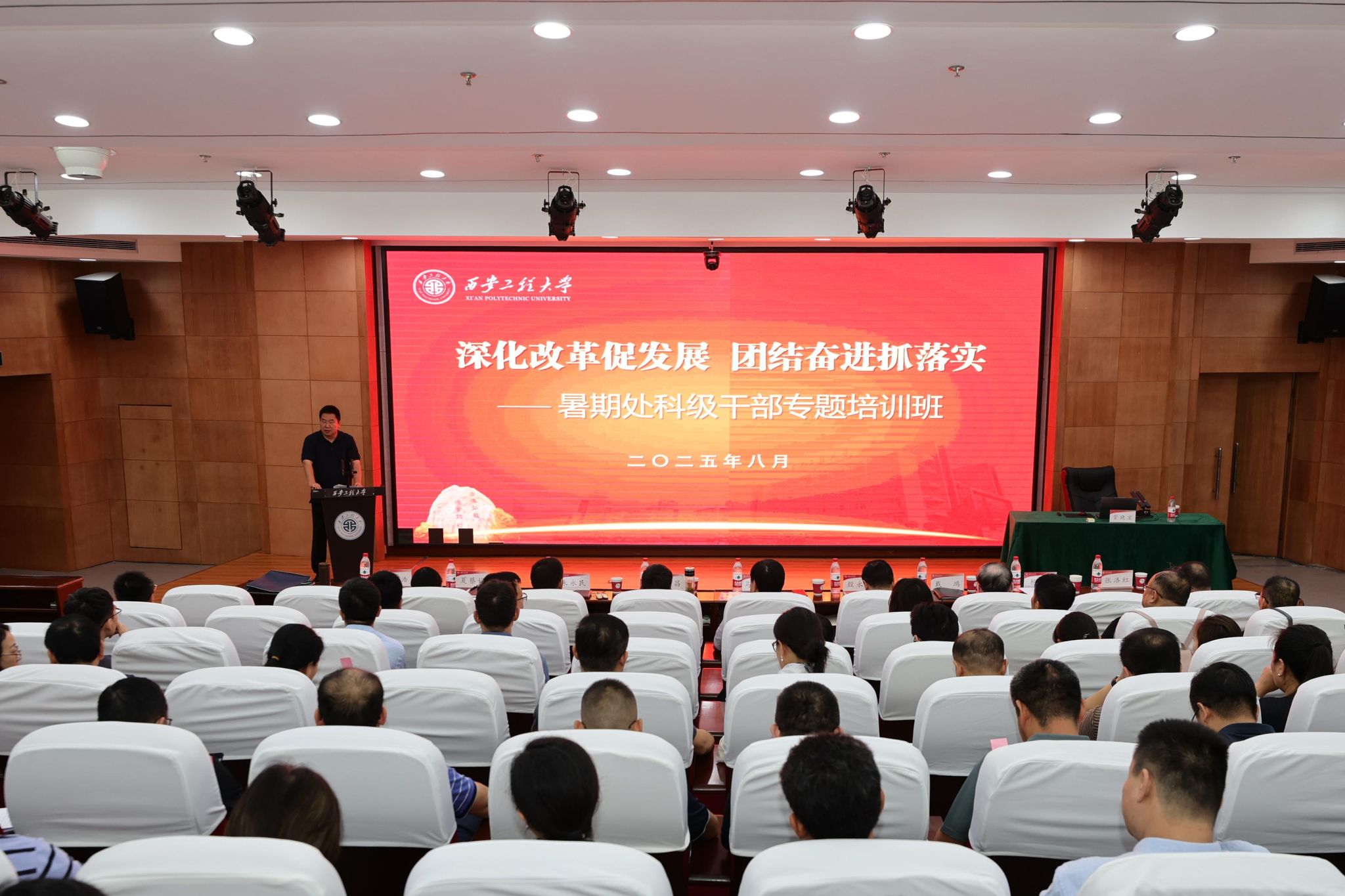 8月17日至19日,PP电子在临潼校区举办“深化改革促发展 团结奋进抓落实”2025年暑期处科级干部专题培训班,深入学习贯彻习近平新时代中国特色社会主义思想和党的二十届三中全会精神、全国教育大会精神、第28次全国高校党的建设工作会议精神,持续深化干部作风能力提升年活动,推动深入贯彻中央八项规定精神学习教育走深走实,锻造堪当重任的高素质干部队伍,进一步凝聚推动学校高质量发展的力量。校领导马万清、井浩、辛永昌、殷永建、朱永民、戴鸿、夏蔡娟、杨建、张洛红,全校处科级干部、系部主任、专业负责人、院长助理等300余人参加培训。