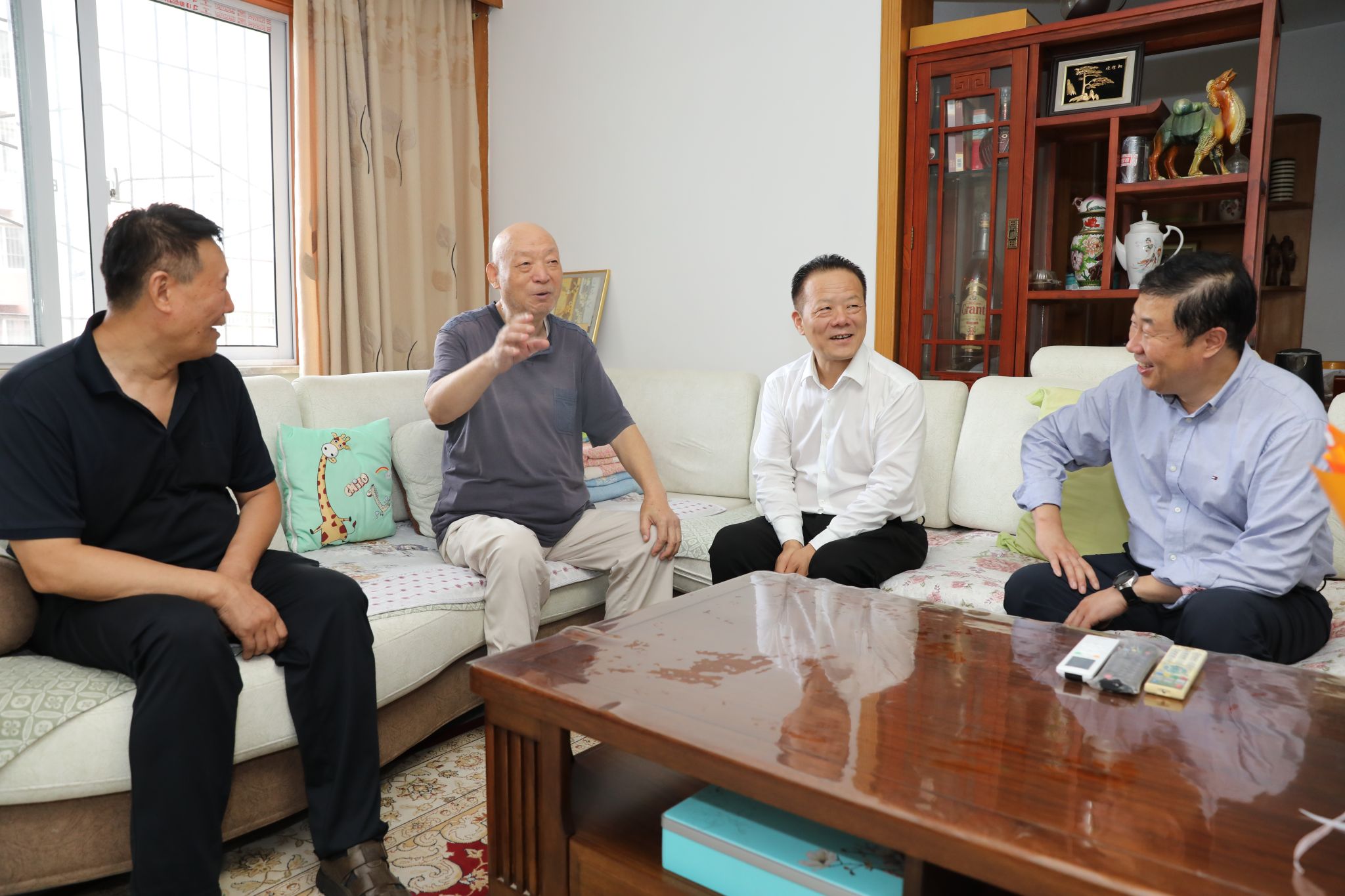 张志昌一行先后走访慰问了退休老领导王享海、刘江南、朱宝瑜和老教授杨定国,每到住处,他都与老同志们促膝而谈,详细询问他们身体状况和日常起居,认真倾听大家对学校建设发展的思考与建议。殷永建向老同志们简要介绍了学校事业发展规划、学科建设和重点工作进展情况。